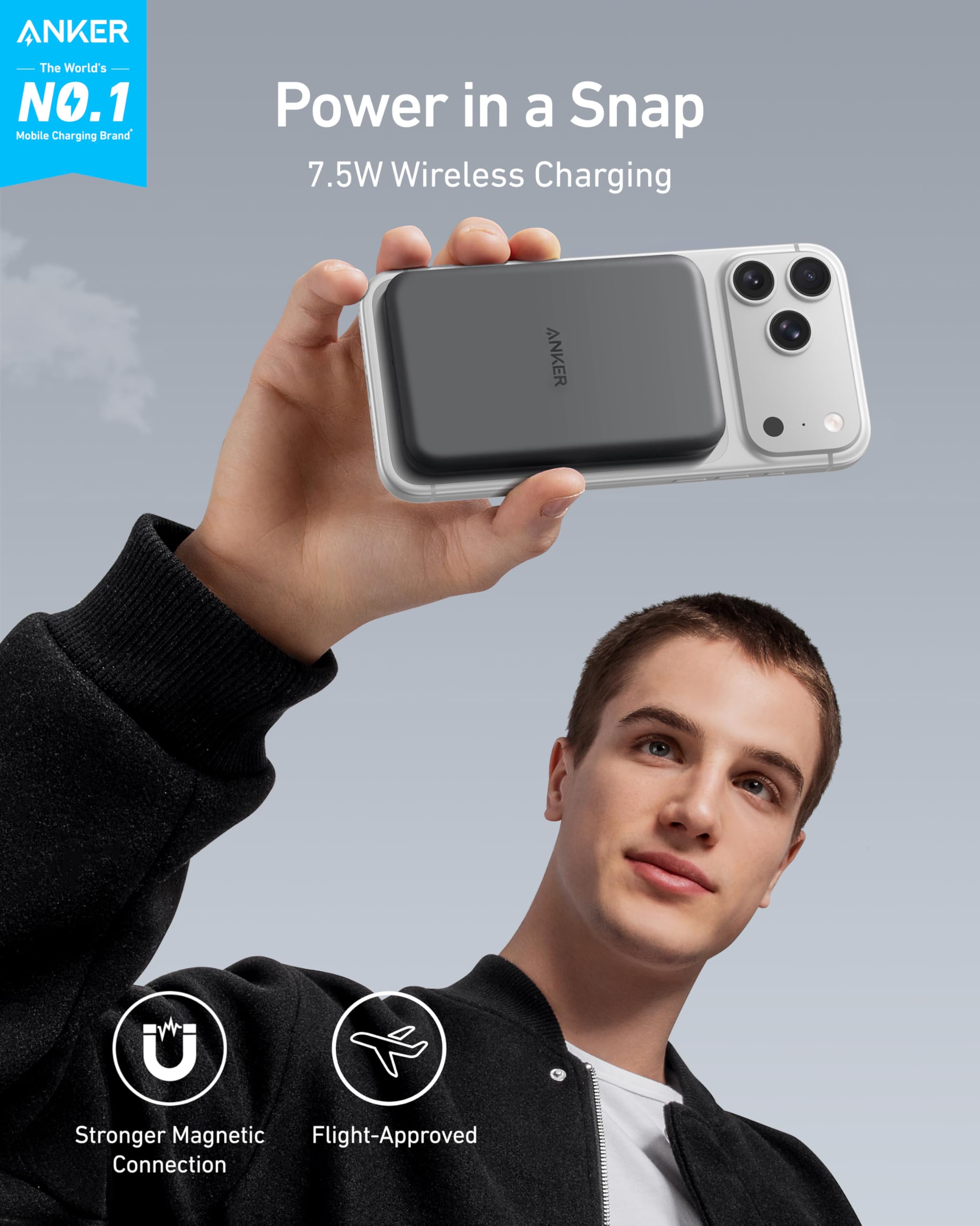 Anker 621 Cargador portátil magnético (MagGo), banco de energía inalámbrico de 5000 mAh con cable USB-C, batería compatible con Magsafe para iPhone 16/15/14/13/12 Series