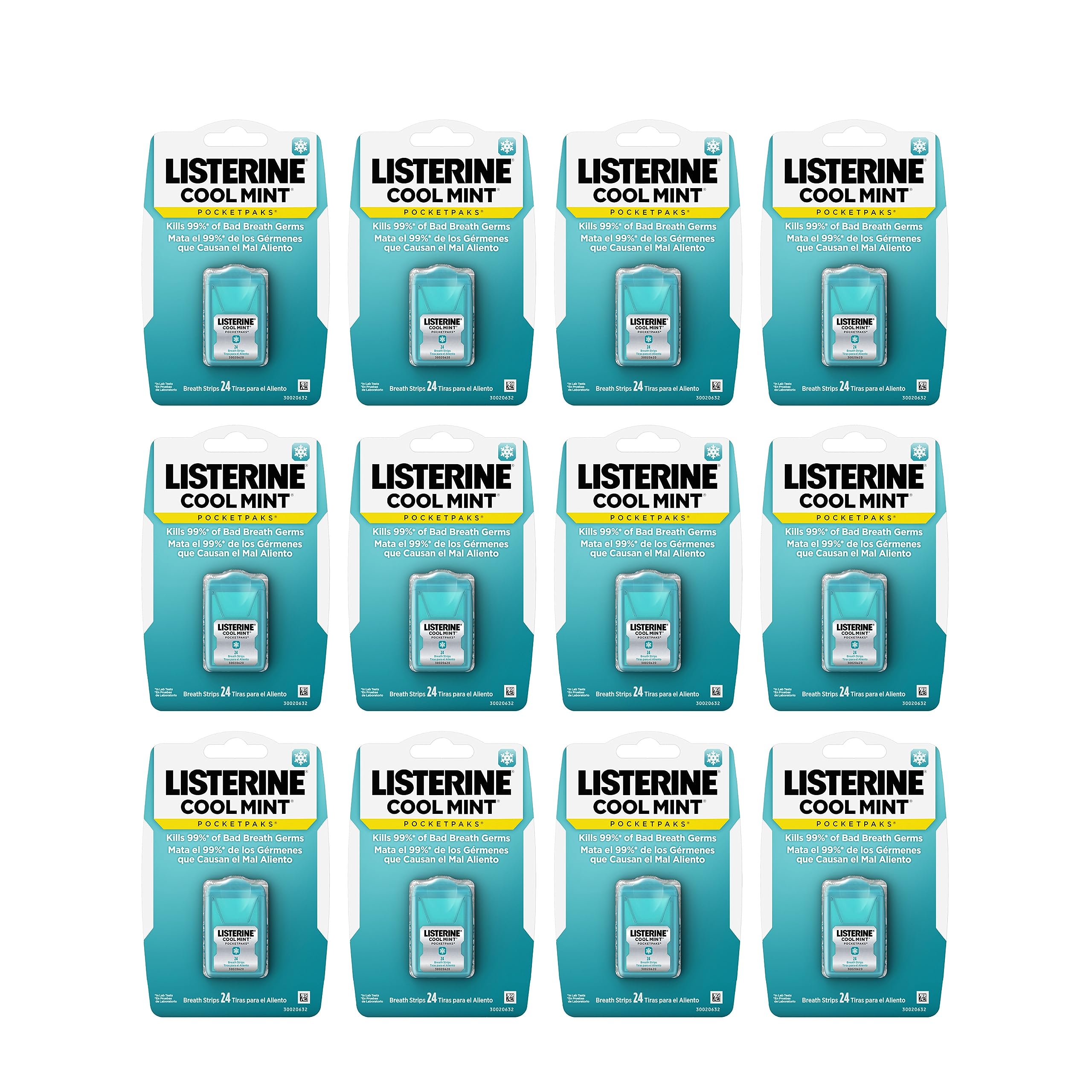 -12 packs containing 24 strips each of Listerine Cool Mint PocketPaks Bad Breath Strips to kill bad .....