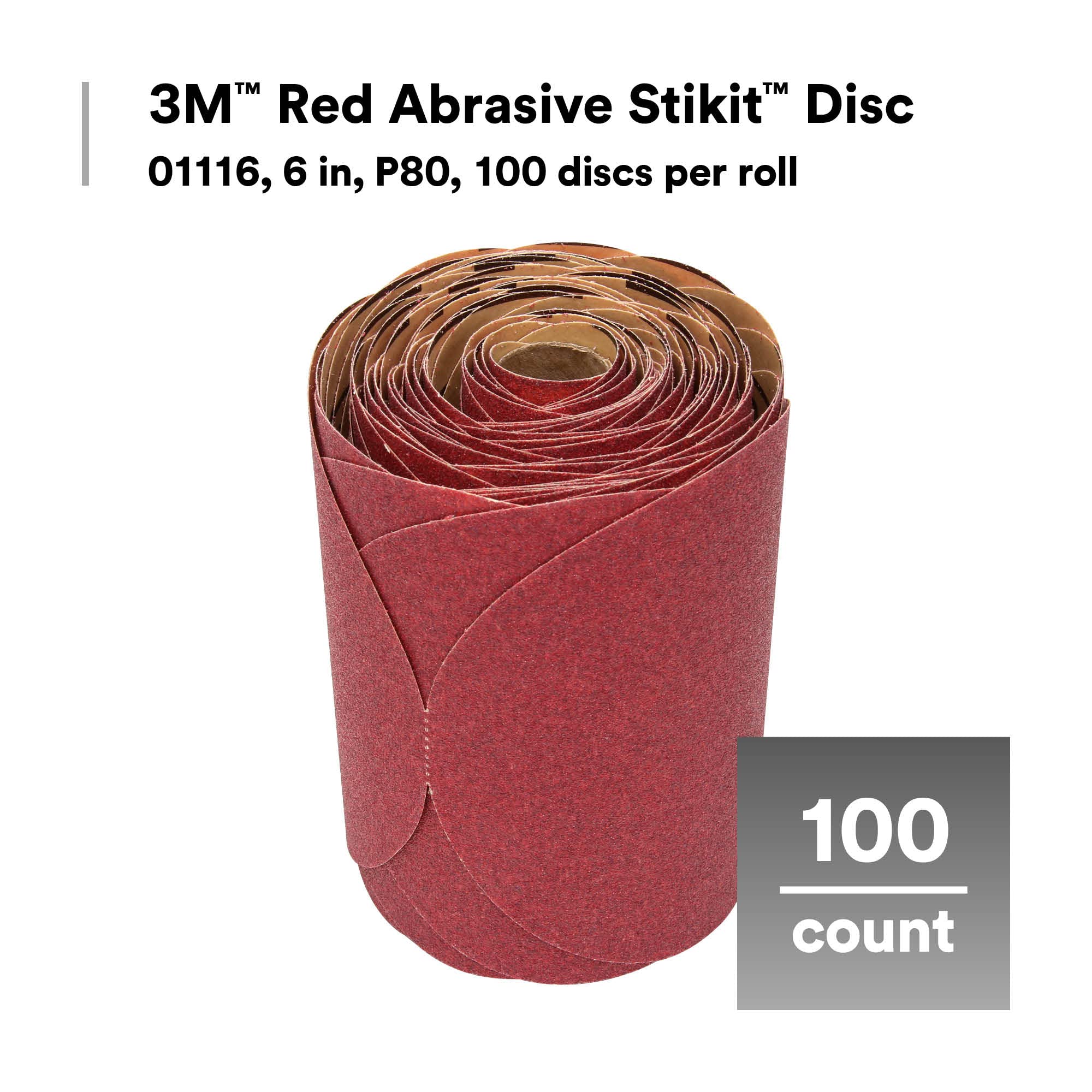Discos de lijado abrasivos rojos 3M Stikit, 01112, sin orificio, 6 pulgadas, grado 180+, paquete de