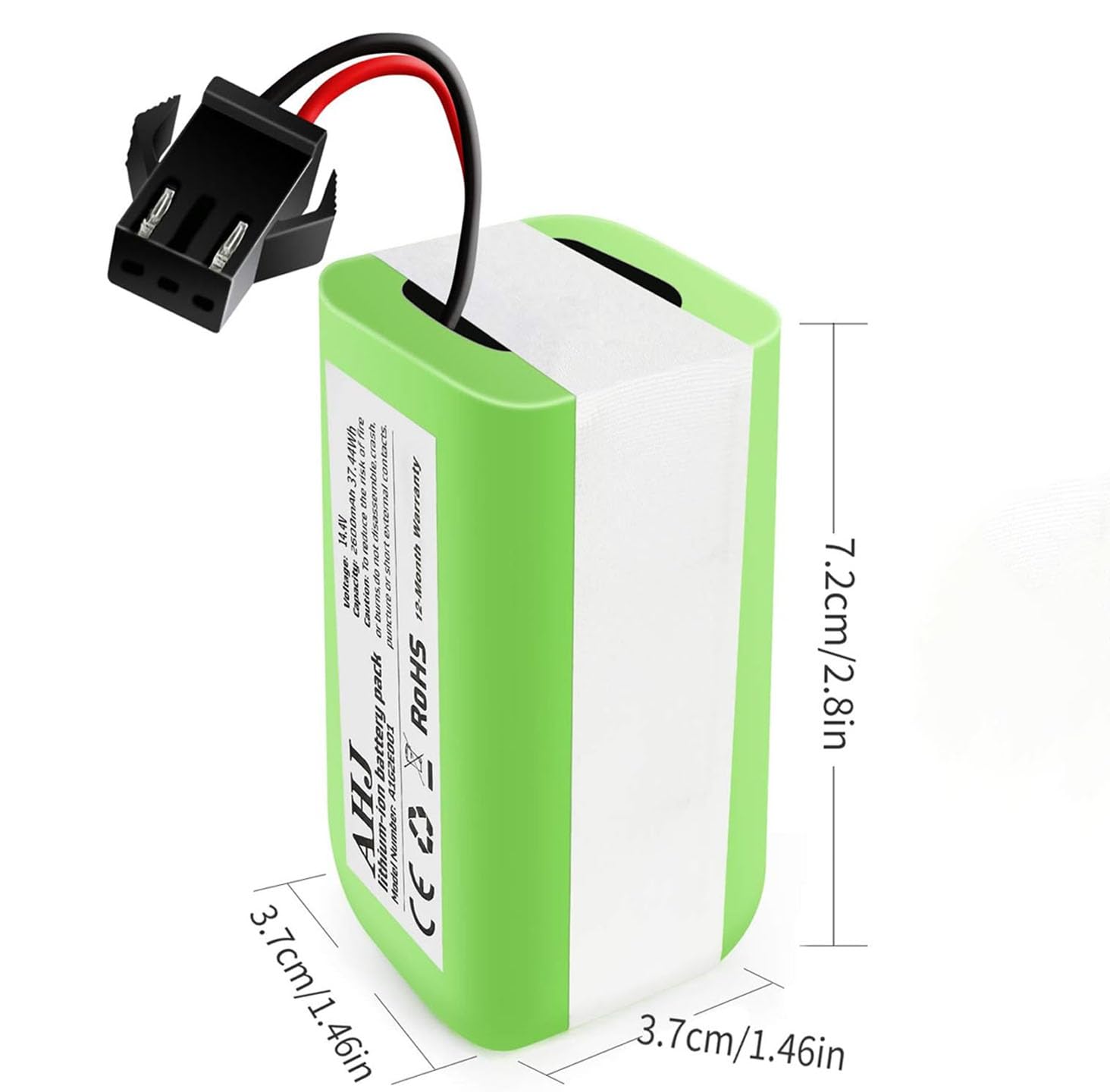 14,4 V 2600 mAh Baterías Piezas de repuesto para DEEBOT N79 DEBOT N79s EUFY RoboVac 11S RoboVac 11 RoboVac 30, revive tu aspiradora robótica de nuevo. Características: Batería de ion de litio de 14,4 V 2600 mAh. 100 a 180 minutos de tiempo de trabajo 4 celdas 18650 de calidad. 500 ciclos de uso Muy fácil de instalar. Sin efecto de memoria Baja tasa de autodescarga Ultra seguro para tu robot Las piezas de repuesto AHJ son compatibles con muchos modelos populares: Batería de repuesto para Deebot Parts Series: Ecovas Deebot N79, Deebot N79S baterías; Deebot N622, Deebot DN622.11 baterías; Batería de repuesto para la serie de piezas EUFY: Eufy RoboVac 11S RoboVac 11 RoboVac 11S MAX Eufy RoboVac 12 RoboVac 15T RoboVac 15C RoboVac 15C MAX Eufy RoboVac 30 RoboVac 30C RoboVac 30 MAX RoboVac 35C Batería de repuesto para Shark Parts Series: Shark RV700 Shark RV720 Shark RV750 Shark RV755 (sólo funciona para estos cuatro modelos) Batería de repuesto para Cecotec Conga Parts Series: Conga Excellence 990, Conga 950, Conga 1090. No compatible con: Eufy RoboVac 11+, iLife A4 A4S A6 V7 V7S V7S Pro y CONGA 1290 1390 3090 4090. Comprueba tu número de modelo antes de comprar, asegurándote de que tu enchufe original de la batería es el mismo que la batería AHJ. Especificaciones: Capacidad de batería: 2600 mAh Voltaje de la pila: 14,4 V. Tipo de batería: iones de litio Dimensiones de la batería: 2.8 x 1.5 x 1.5 in.