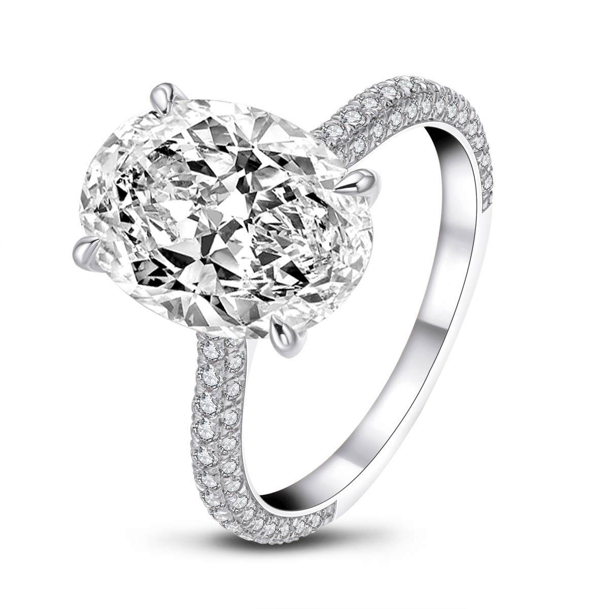 AINUOSHI Anillos de boda de plata de ley 925 para mujer, anillo de compromiso de circonita cúbica de corte ovalado de 5 quilates (8)