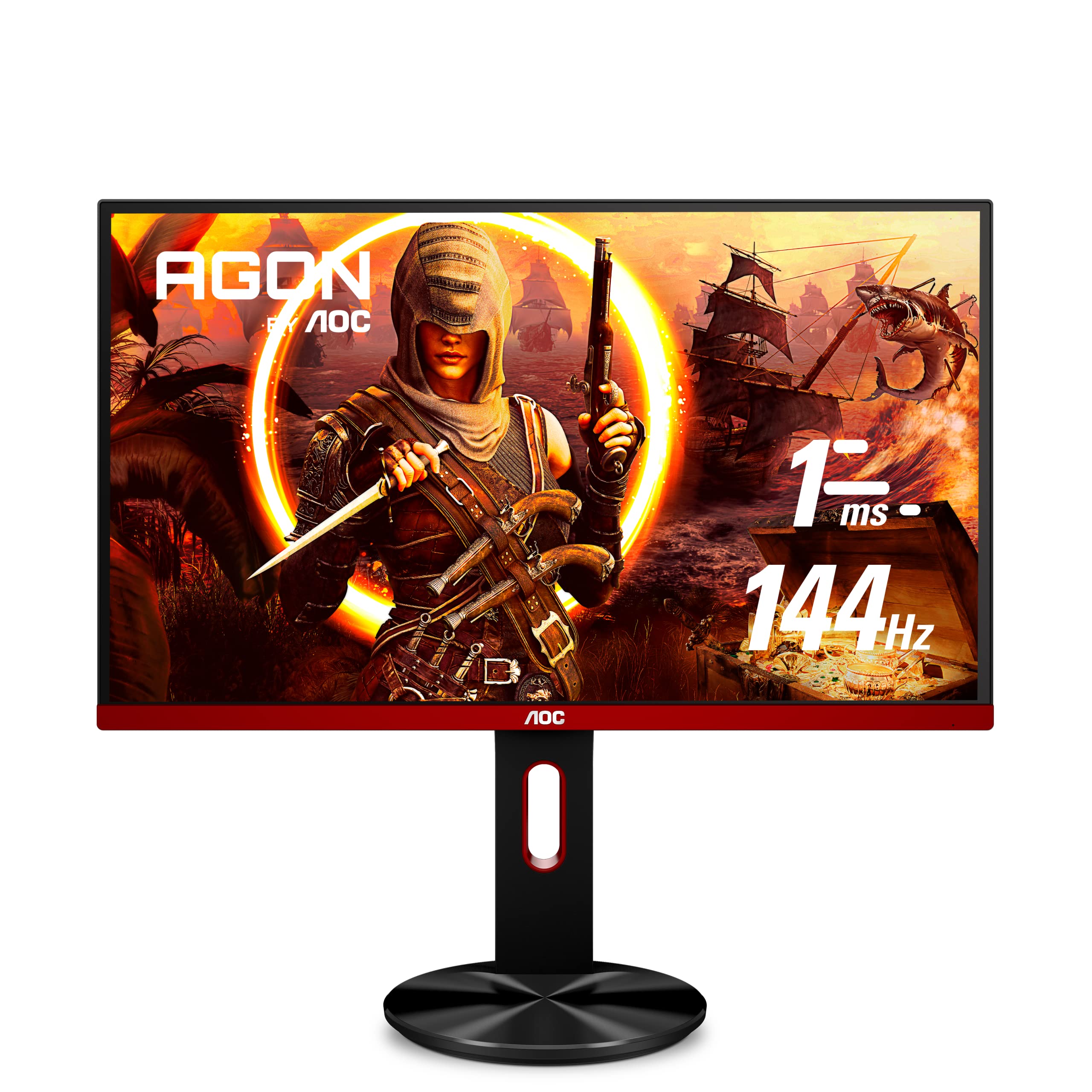 AOC G2590PX Monitor para juegos sin marco de 25", FHD, 1 ms, 144 Hz, compatible con NVIDIA G-SYNC, 96 % sRGB, bajo retraso de entrada, DP/HDMI/VGA, ajuste de altura, VESA