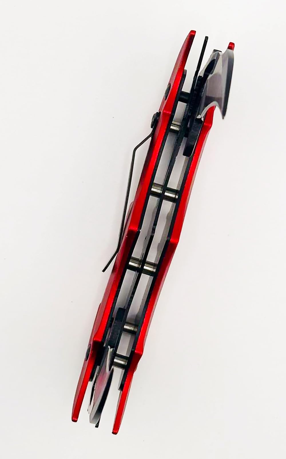 ARLEZA STORM Cuchillo de murciélago de doble hoja - Cuchillo táctico de doble hoja asistido por resorte plegable de bolsillo de 11" (rojo/negro)