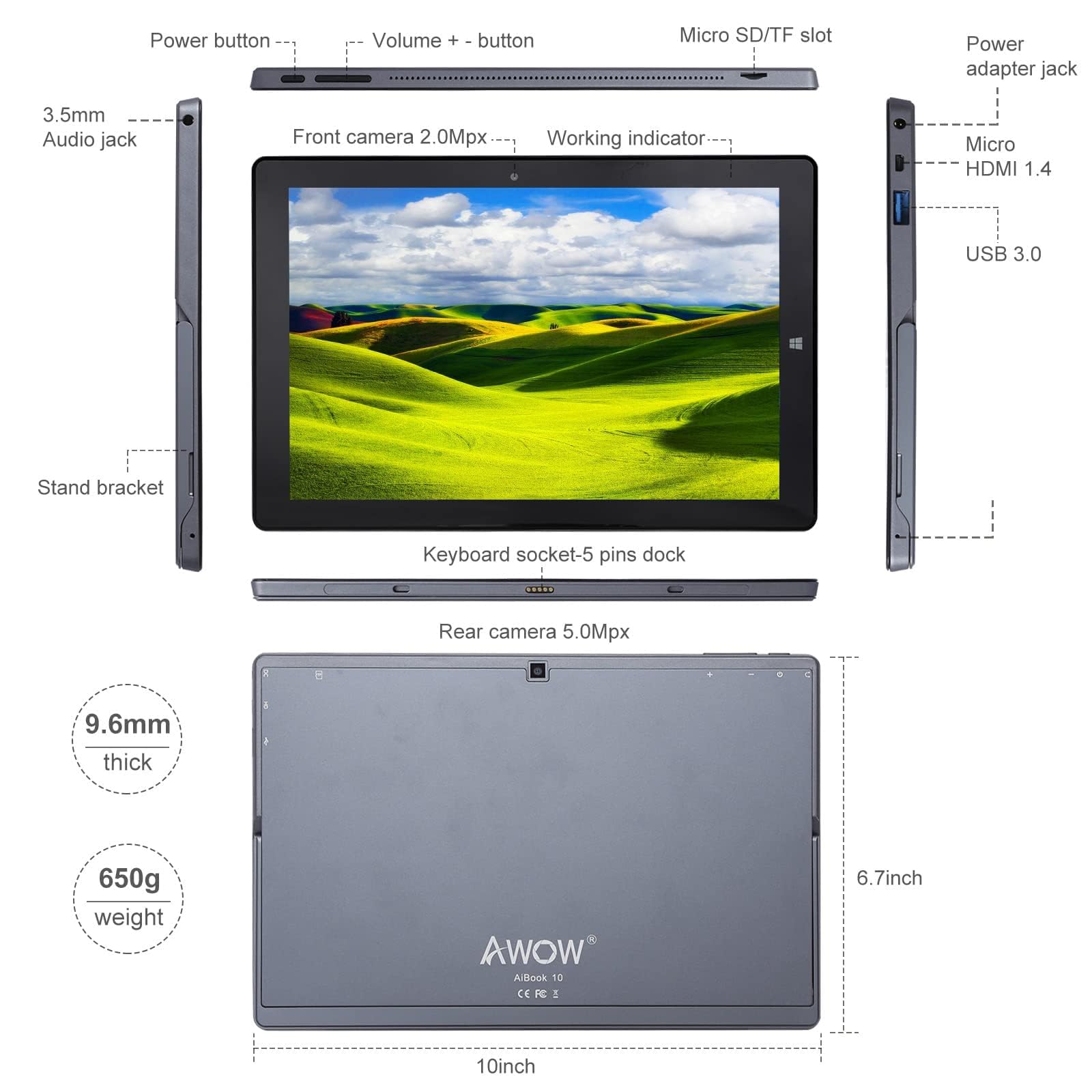 AWOW Windows 11 Tablet 12GB RAM 256GB SSD, 10.1 Inch Tablets Detachable Touchscreen, Intel N100, 2.4G+5G WiFi, Bluetooth5, USB3.2, HDMI, Dual Camera