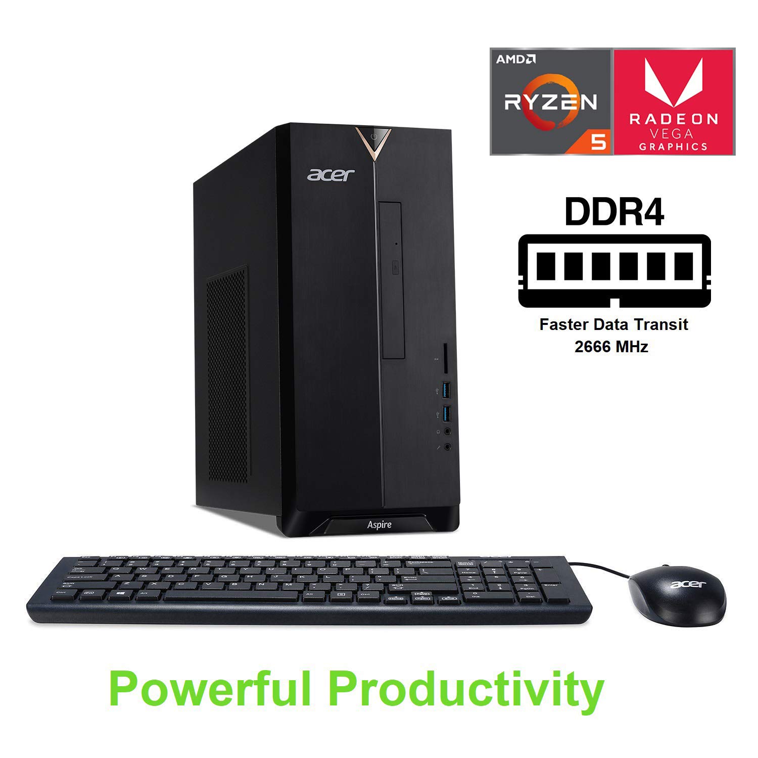 Computadora de escritorio Acer Aspire TC-390-UA92, procesador AMD Ryzen 5 3400G de cuatro núcleos, gráficos AMD Radeon RX Vega 11, 12 GB DDR4, 512 GB NVMe M.2 SSD, DVD 8X, Wi-Fi 5, Windows 10 Home