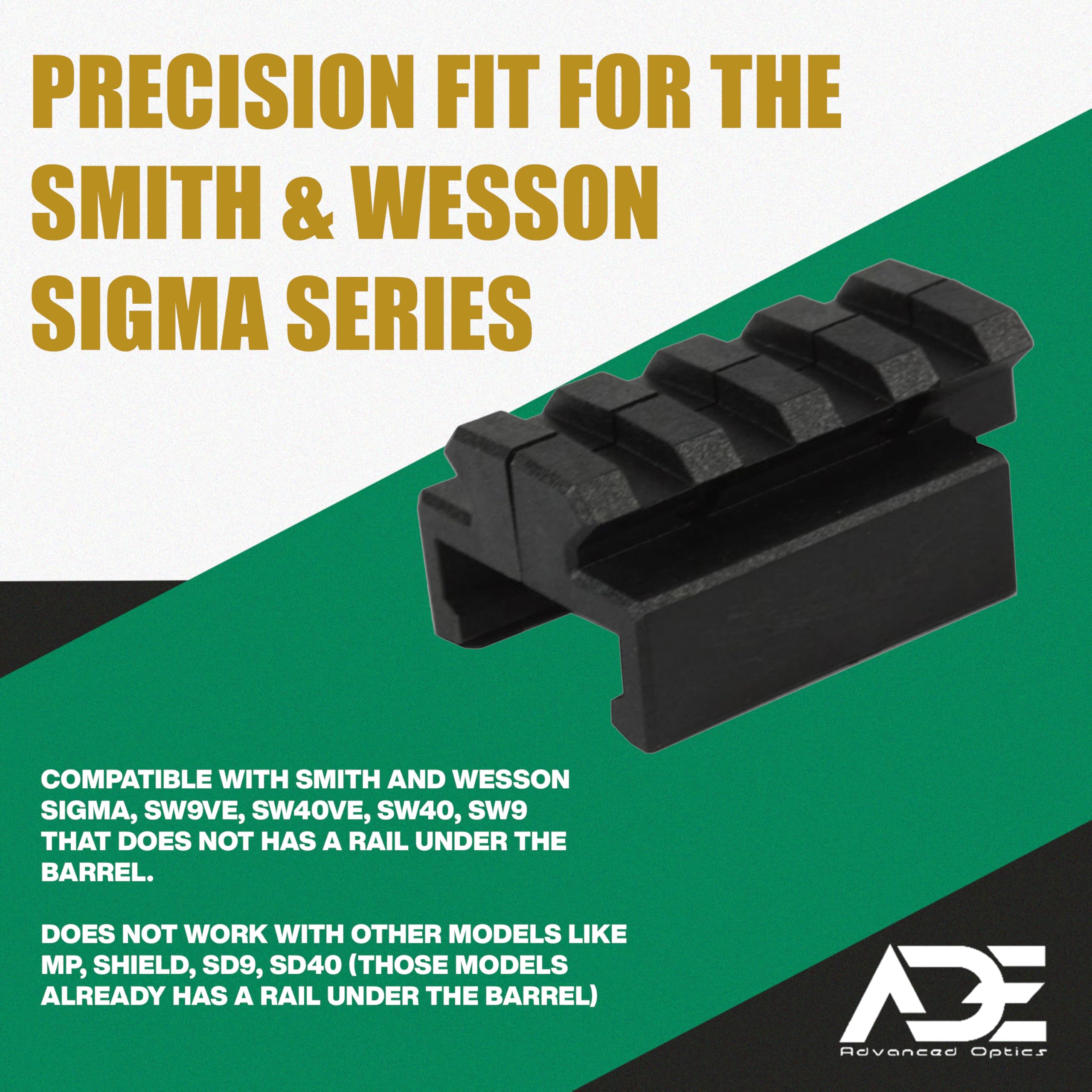 Adaptador de riel Ade Advanced Optics S&W Sigma - Montaje Weaver Picatinny - Conversión de cola de milano de 20 mm para mira láser o linterna - Incluye tornillos de acero y llave - Instalación fácil y segura