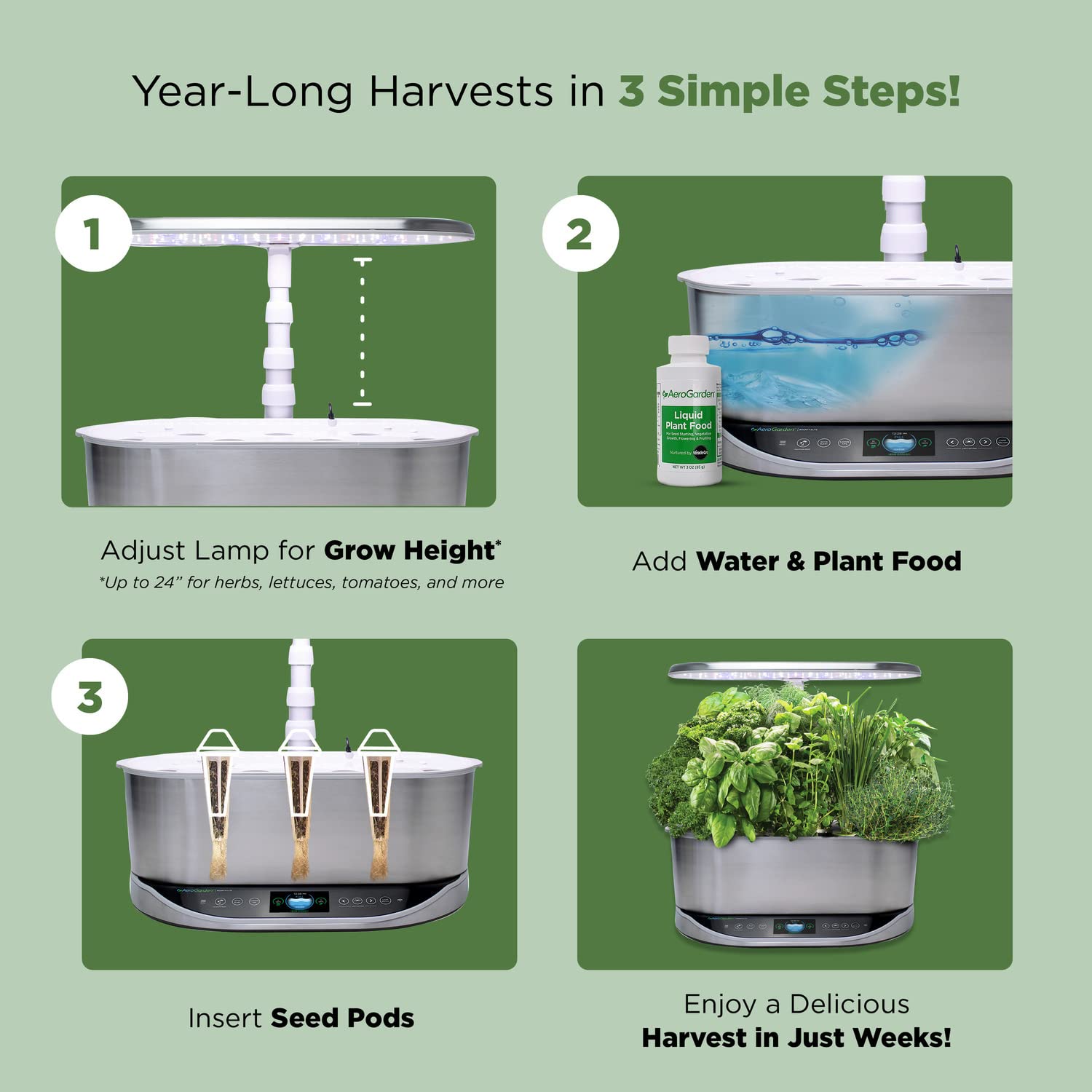 -Compatible with WiFi and Alexa, and can be monitored and controlled from our AeroGarden app or your Amazon Echo device; Amazon and all related Marks are Trademarks of Amazon.com, Inc. or its affiliates.