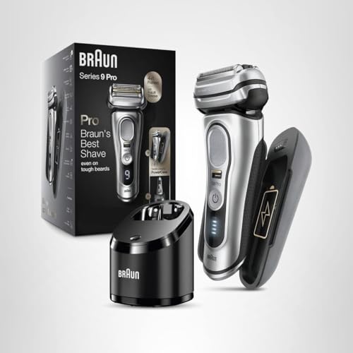 -Braun Series 9 Pro 9477cc Men's Electric Shaver with PowerCase, Clean & Charge Station, Cleaning Cartridge, Smart Plug and Cleaning Brush