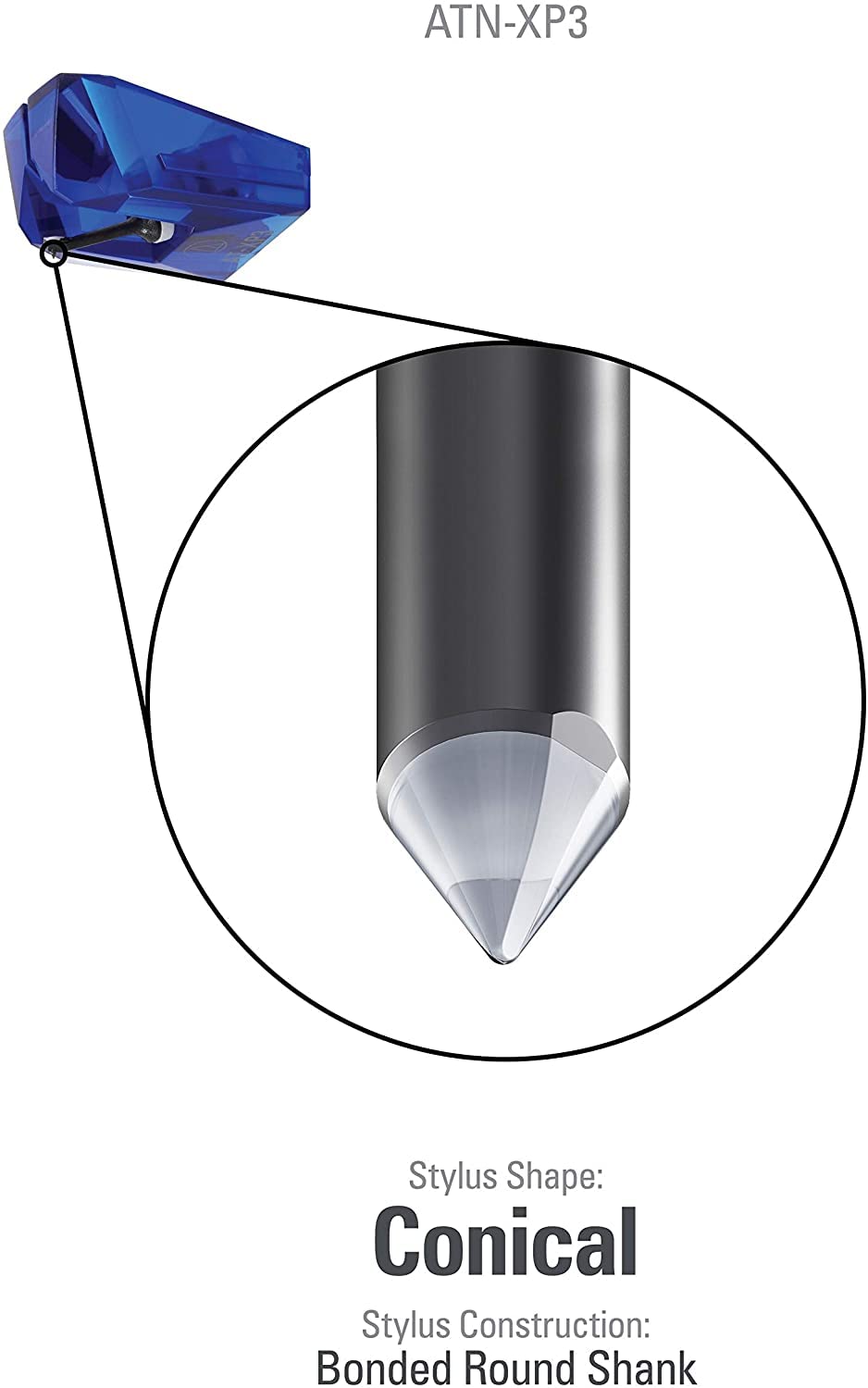 The ATN-XP3 is a 0. 6 mil conical replacement stylus for the AT-XP3 DJ Cartridge. Its bonded round shank design tracks the center of the record groove for reliable performance and excellent fidelity.