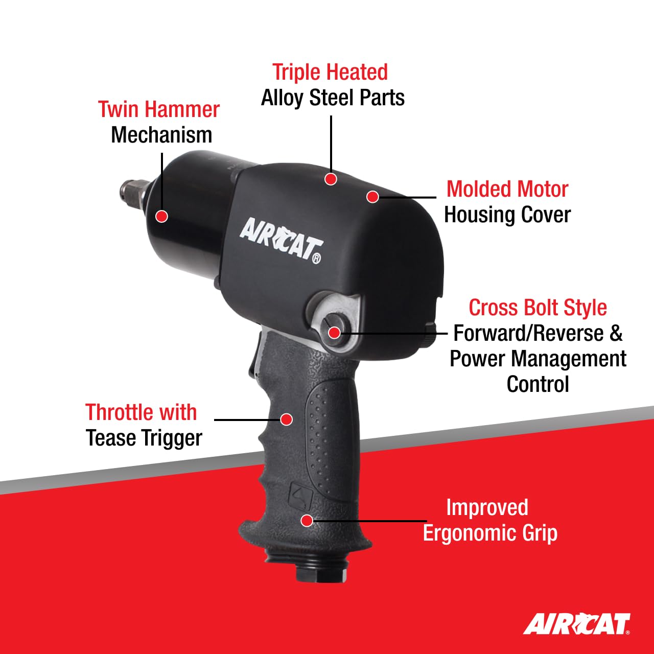 Herramientas neumáticas de AirCat 1460-XL-2: 1/2 pulgada de altura de presión de aire Llave 900 pies-lb de torque-2 pulgadas Extended yunque