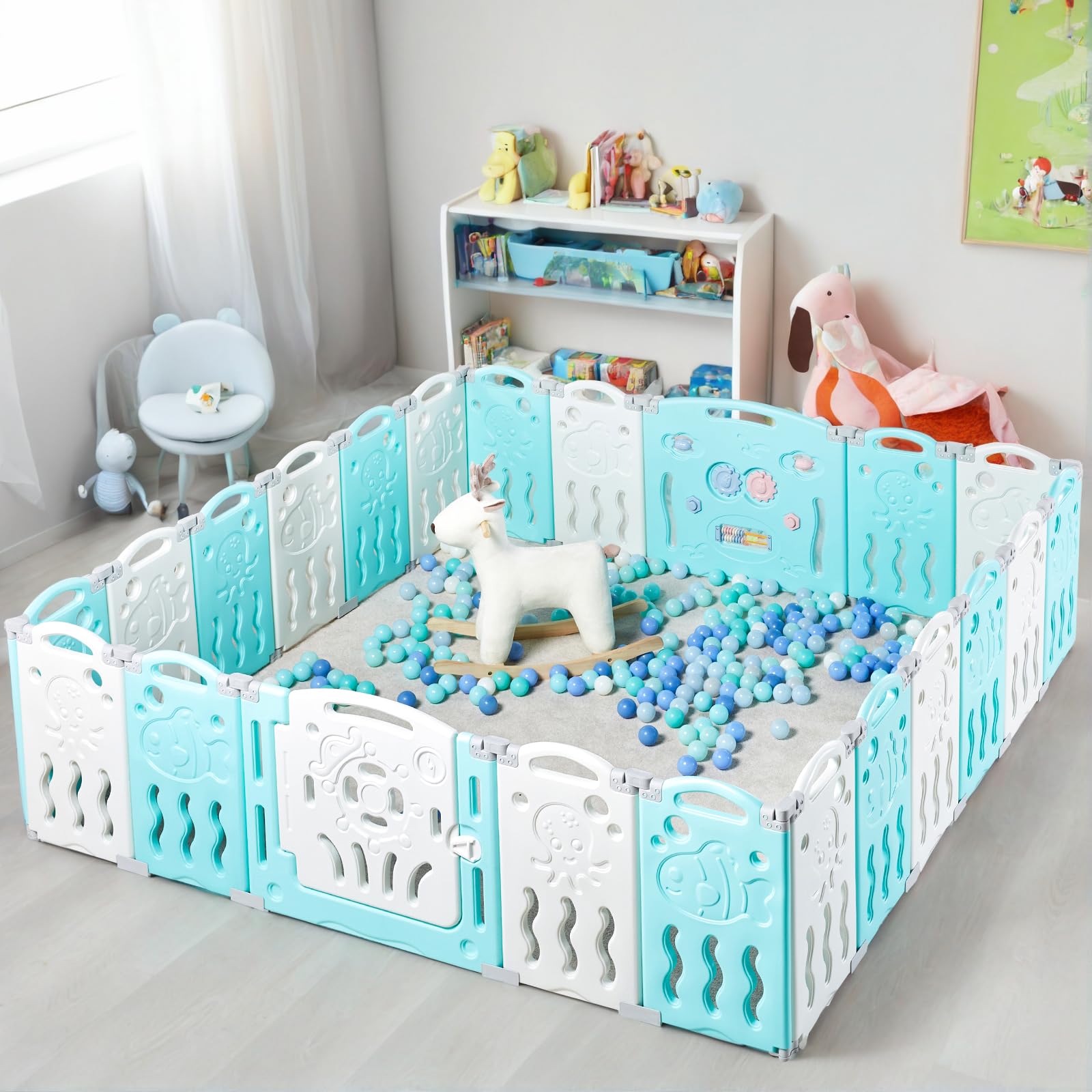 Albott Parque infantil para bebés de 22 paneles, centro de juegos de seguridad para niños, centro de actividades para niños en interiores o exteriores, patio de juegos portátil con puerta de seguridad para bebés y niños pequeños (azul+blanco)