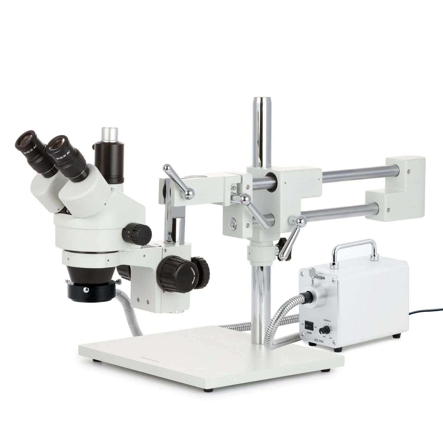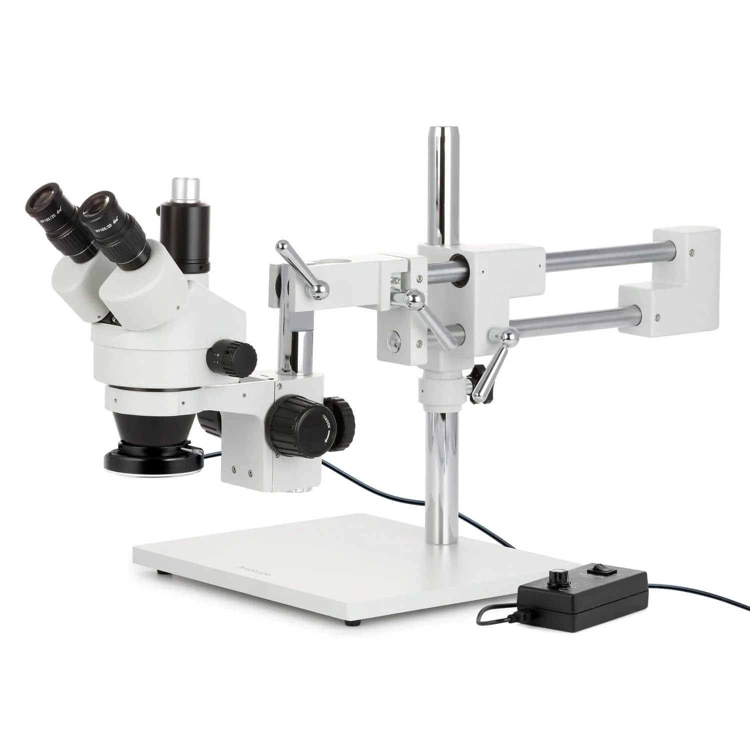 -Professional stereo microscope with boom stand has long working distance to enable users to perform.....