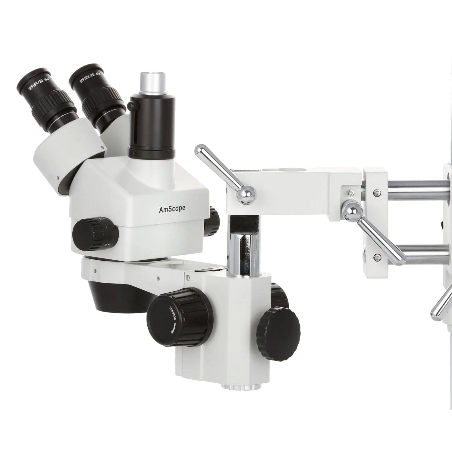 AmScope - Microscopio con zoom estéreo simultáneo de 3,5X-90X en soporte de brazo doble con anillo de luz de 144 LED - SM-4TPZ-144