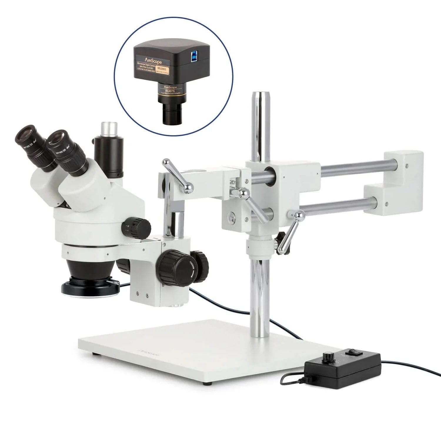 -A highly-versatile stereo microscope on a heavy-duty, multi-pivot boom-stand which allows the microscope to easily swing into place when needed, and away when not.
