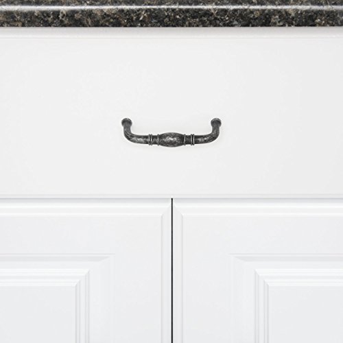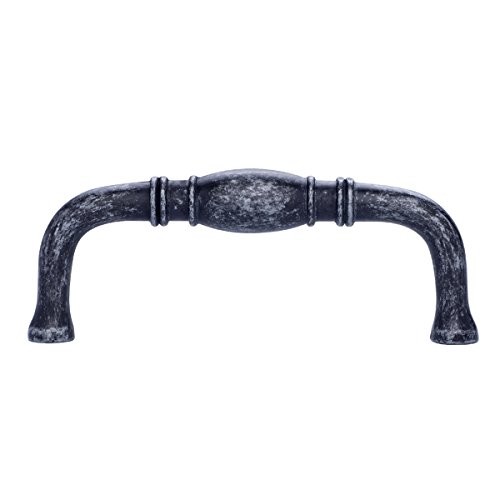 Amazon Basics - Manija tradicional para gabinete, 3,71 pulgadas de largo (centro de orificio de 3 pulgadas), plata antigua, paquete de 10