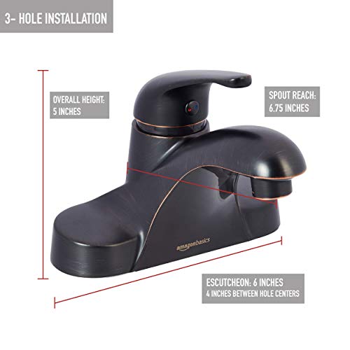 - Make sure this fitsby entering your model number. - Durable zinc alloy body construction - 3-hole mount with 4-inch center set design - Oil-rubbed bronze finish - Hand-polished single-lever handle; includes ceramic discs for improved longevity - Includes pop-up drain assembly and detailed installation instructions - Assembled dimensions: 6.1 x 4.2 x 5.8 inches; backed by an Amazon Basics 1-year limited warranty Color:Oil-Rubbed BronzeAn Amazon Brand