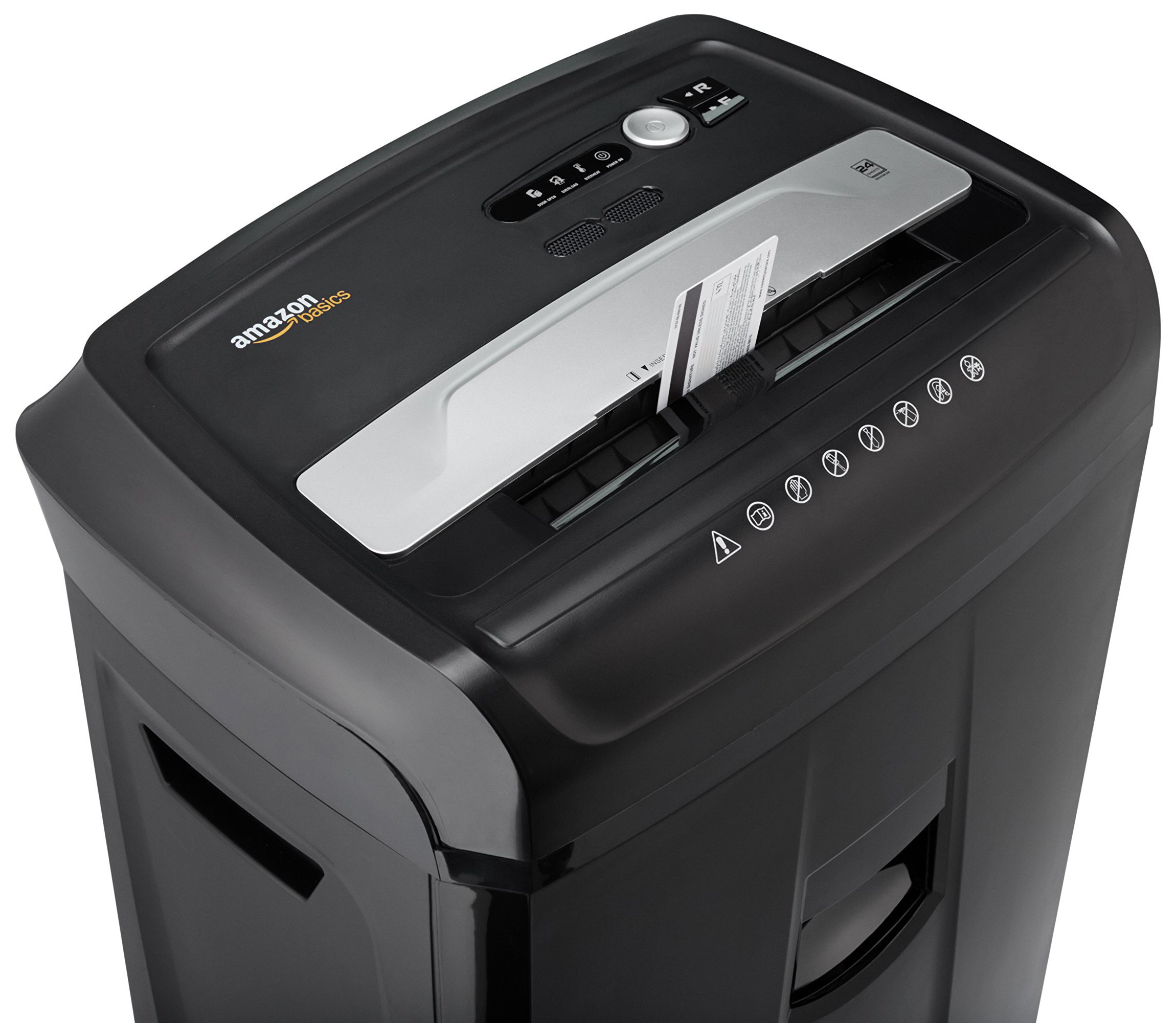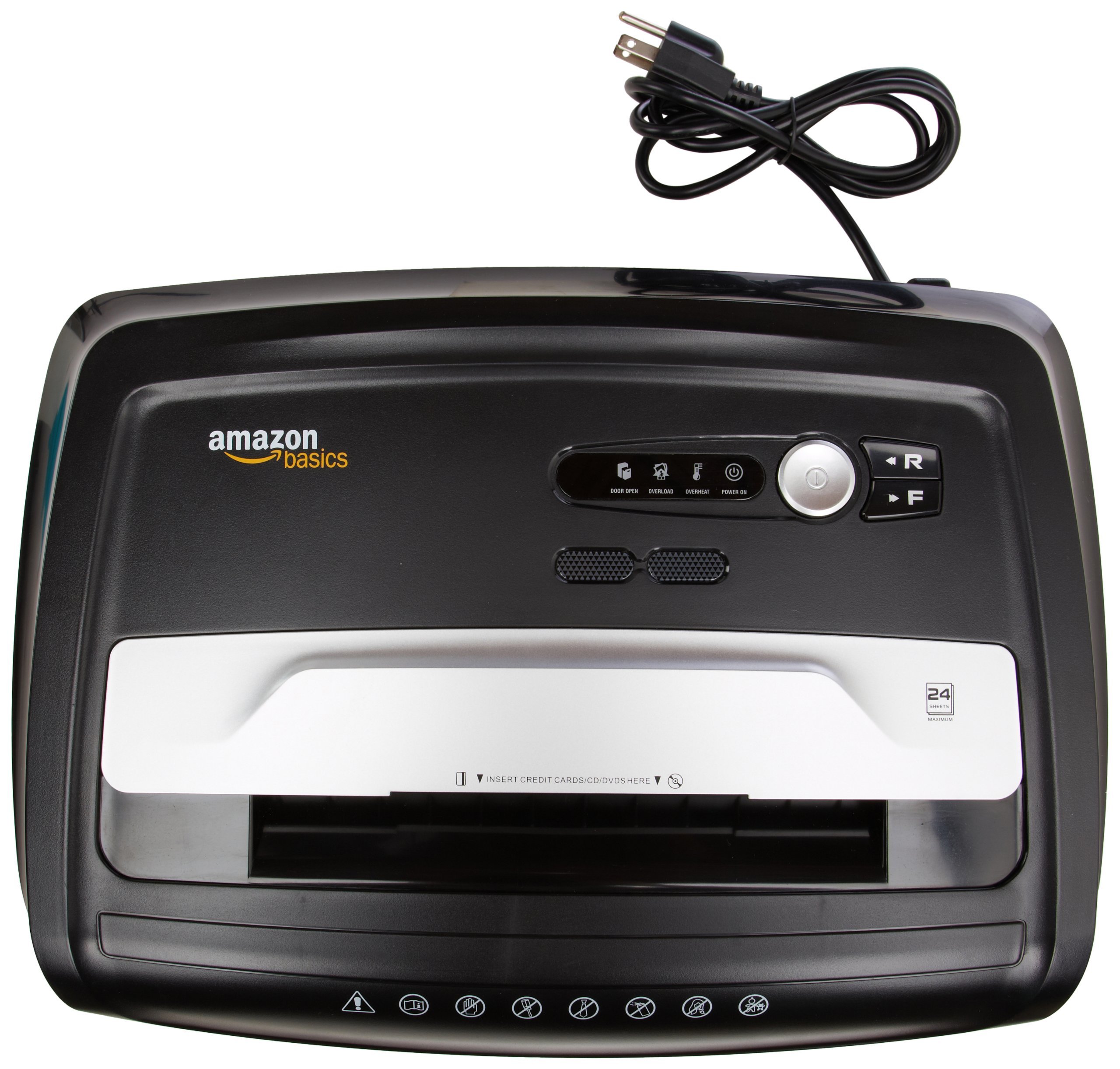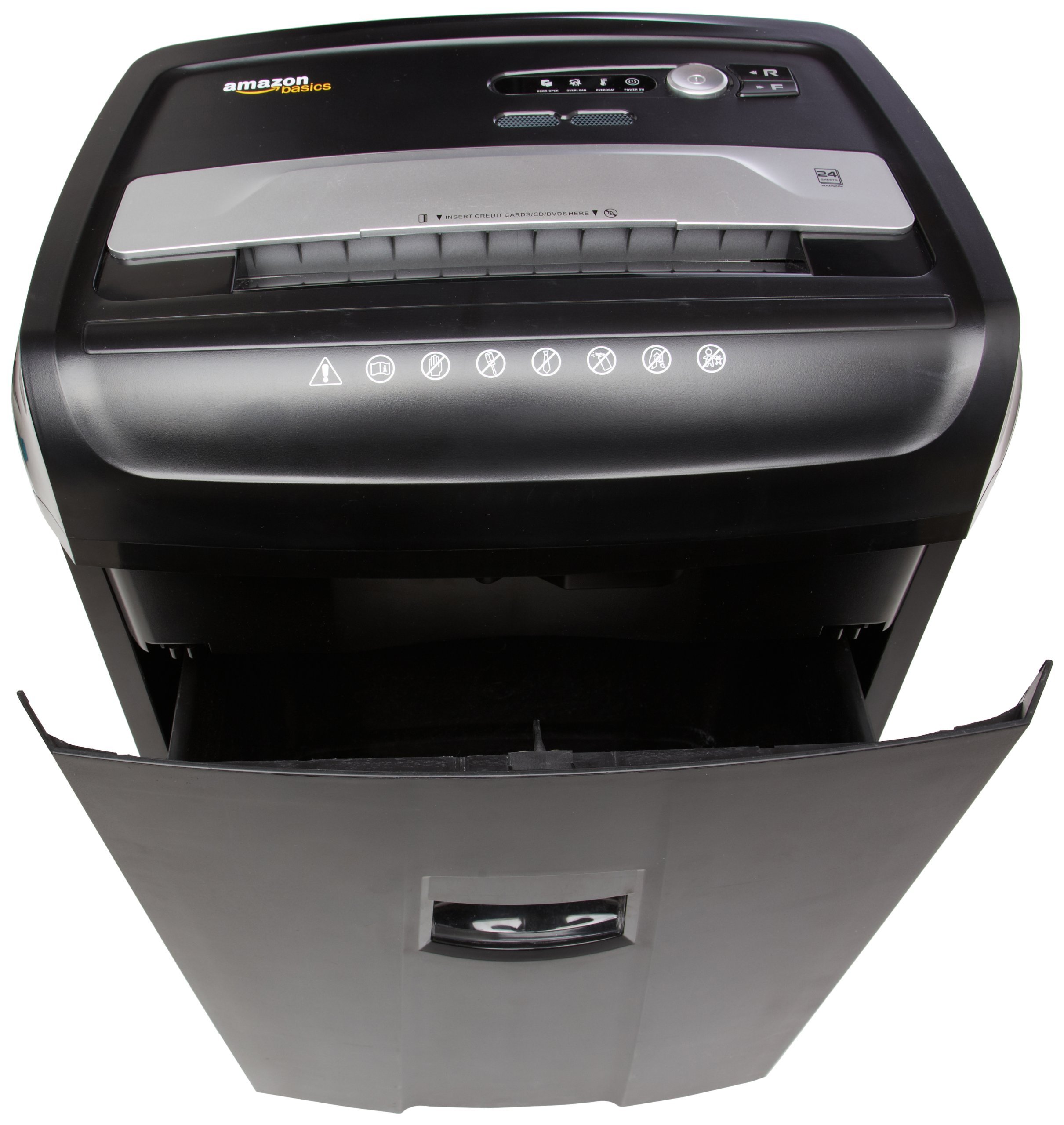 Product Description Amazon Basics 24-Sheet Cross-Cut Paper, CD and Credit Card Home Office Shredder with Pullout Basket From the Manufacturer Amazon Basics