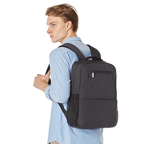 - Make sure this fitsby entering your model number. - Multi-compartment professional backpack designed to hold a laptop up to 15.6 inches - Interior pocket organizers for keeping smaller items neatly stored and easy to find - Zippered front pocket for convenient access to frequently used items; side mesh water-bottle pockets - Made of durable polyester in a sleek black color; luggage pass-through for travel-savvy convenience - Measures 12 by 4.6 by 17 inches; backed by an Amazon Basics 1-year limited warranty