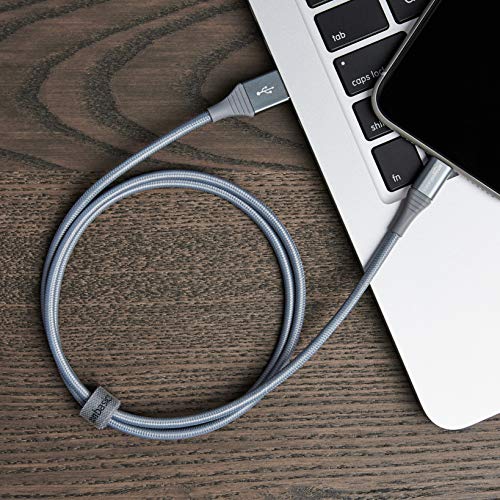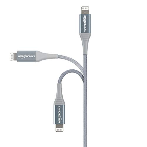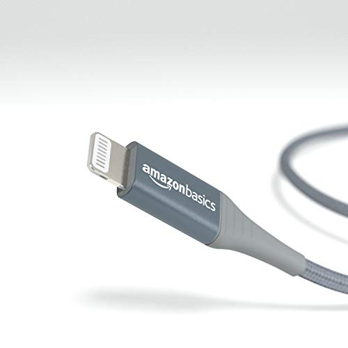 Cable Lightning a USB de nailon trenzado doble de Amazon Basics, colección avanzada, cargador de iPhone de Apple con certificación MFi, gris oscuro, 3 pies (paquete de 2) (durabilidad nominal de 10,000 curvas)