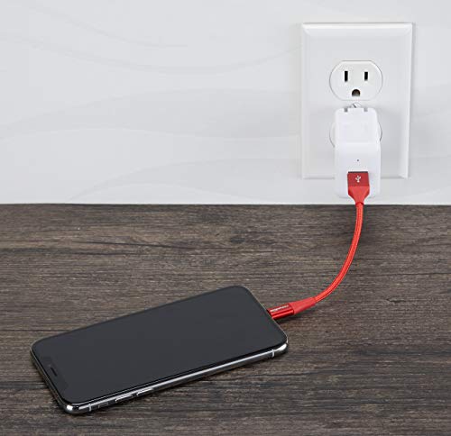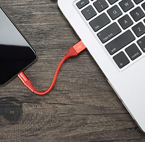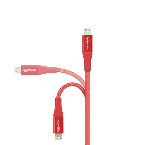 Amazon Basics - Cable Lightning a USB de nailon trenzado doble, colección avanzada, cargador de iPhone de Apple con certificación MFi, rojo, 4 pulgadas