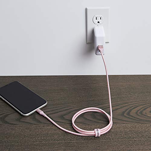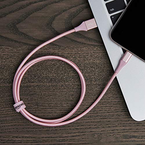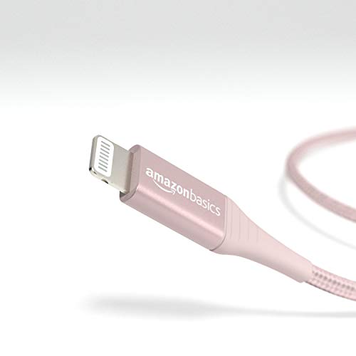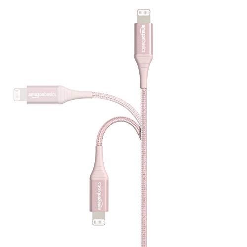 Cable Lightning a USB de nailon trenzado doble de Amazon Basics, colección avanzada, cargador de iPhone de Apple con certificación MFi, oro rosa, 3 pies (paquete de 2) (durabilidad nominal de 10,000 curvas)