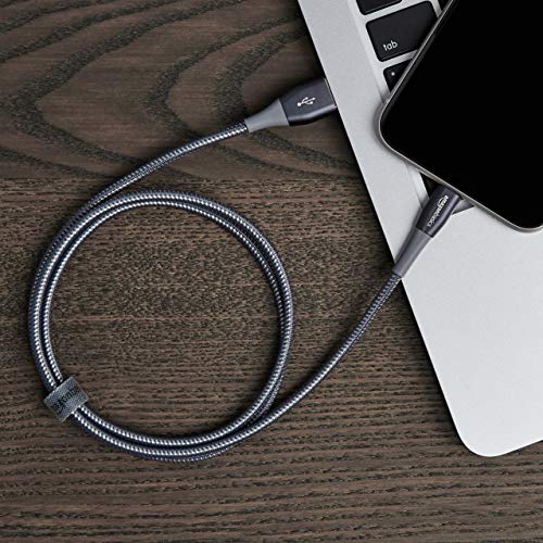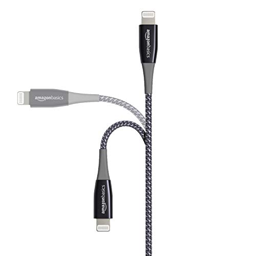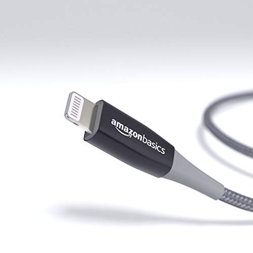 Cable Lightning a USB trenzado de nailon doble premium de Amazon Basics - Cargador de iPhone de Apple con certificación MFi, gris oscuro, actualización de 3 pies (durabilidad clasificada 20, 000 curvas)
