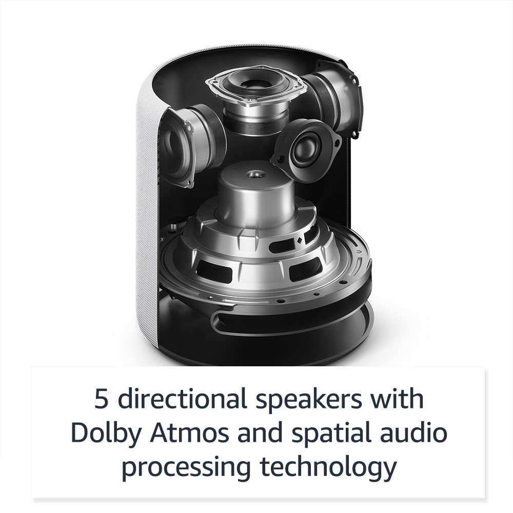 -Enjoy an immersive audio experience - Echo Studio now features spatial audio processing technology for a wider and more immersive audio experience. For stereo formats, Spatial audio processing technology creates a wider and more enveloping sound stage. Its 5 speakers produce powerful bass with improved clarity, dynamic midrange, and crisp highs. Dolby Atmos technology adds space, clarity, and depth.