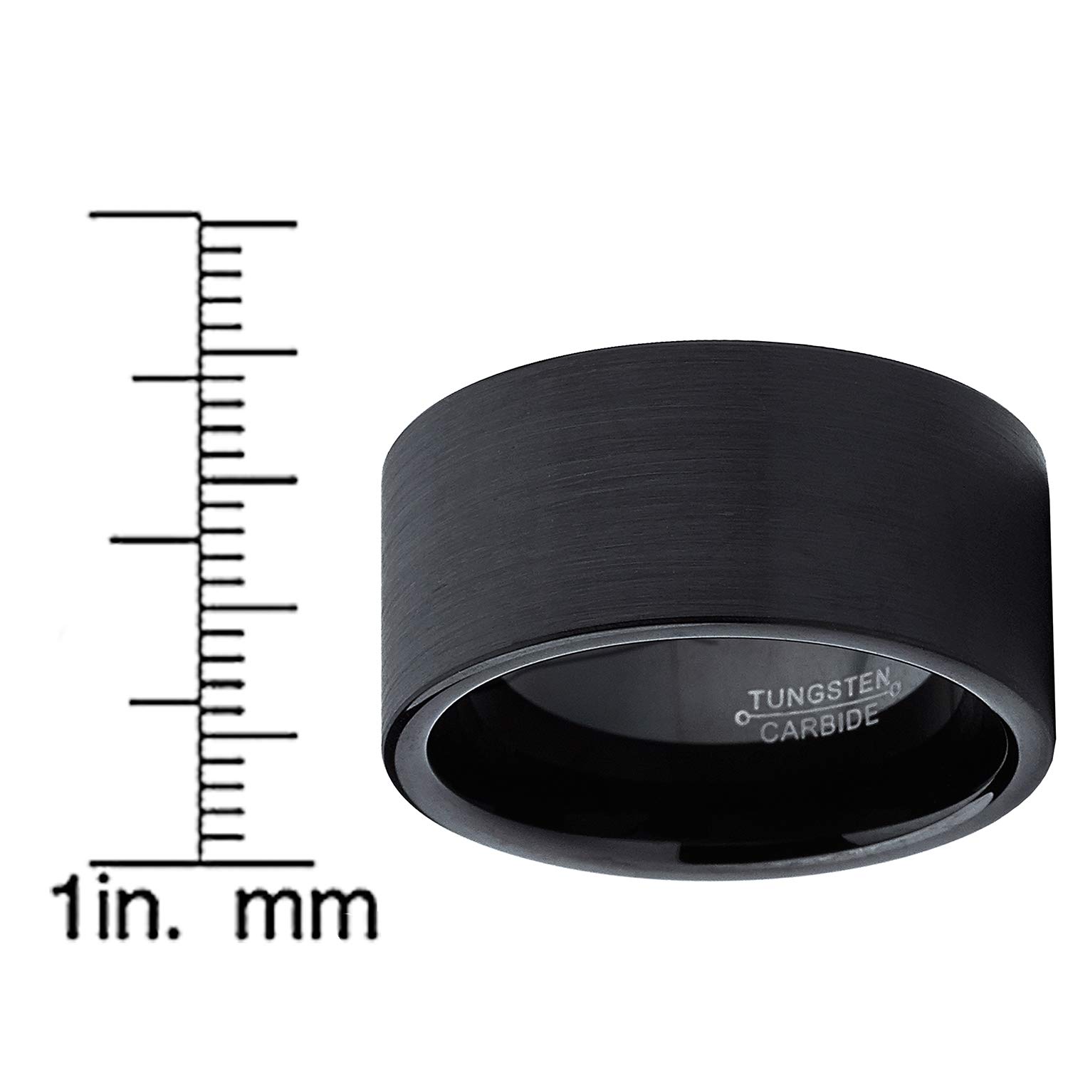 Anillo de carburo de tungsteno cepillado negro con parte superior plana para hombre, 0.472 in, ajust