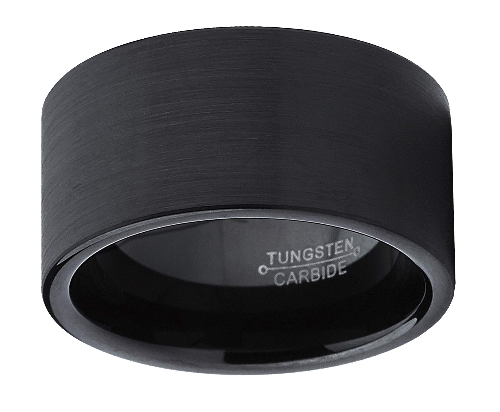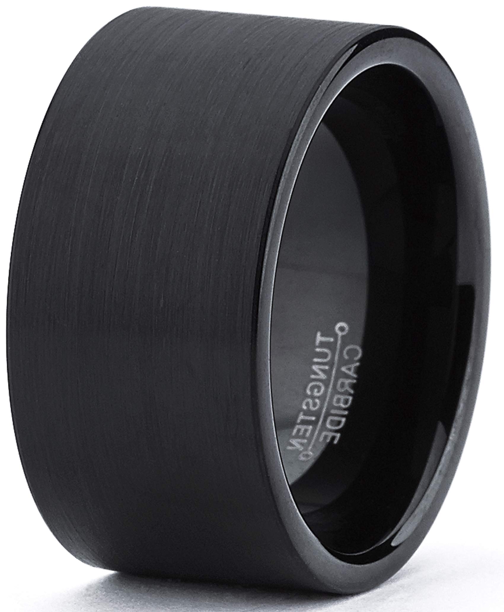 Anillo de carburo de tungsteno cepillado negro con parte superior plana para hombre, 0.472 in, ajuste cómodo, talla 9