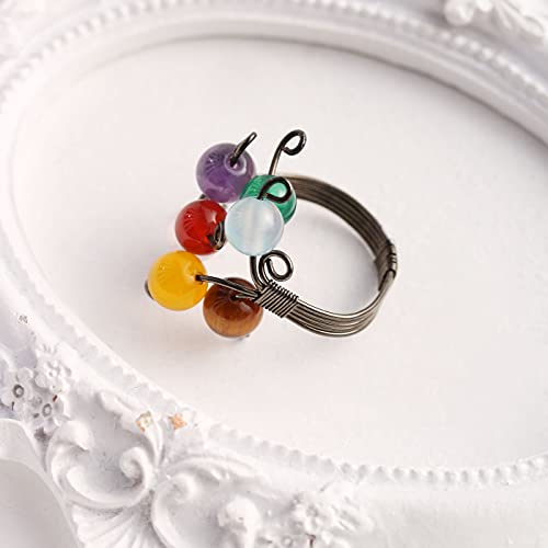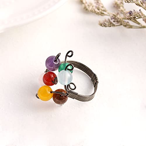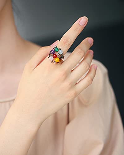 Anillos de ansiedad chapados en oro de 14 quilates para mujer, cuentas de perlas de cristal rosa, anillos abiertos, anillos delicados y modernos para niñas adolescentes (cristal 3)