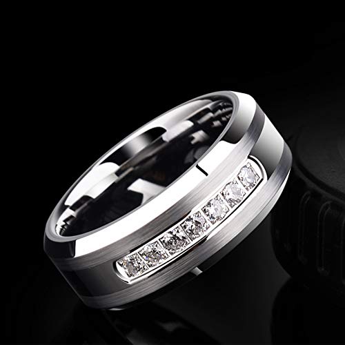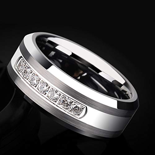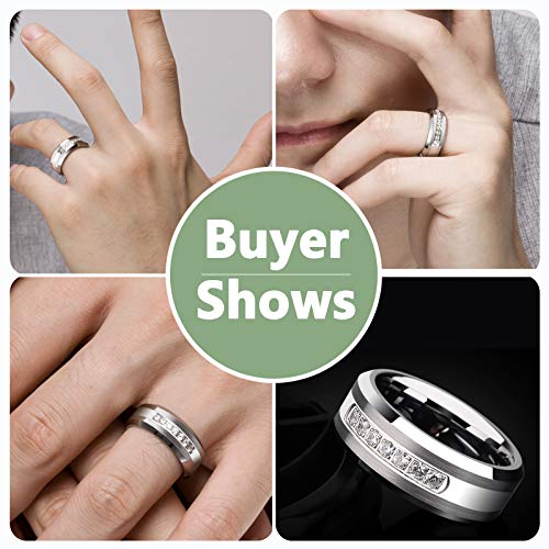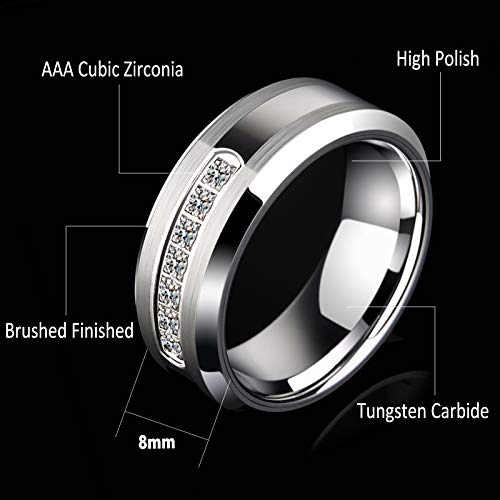 - Men's Ring: 8mm wide cubic zirconia stones matte brushed tungsten carbide wedding bands for him. Scratch proof, super Strong and Scratch Resistant.Mens ring size available: 9 10 11 12 13. - Newshe tungsten rings for men perfect for engagement, wedding, bridal. Great workmanship on matte brushed finish, high polish and beveled edge show manliness and difference to people, comfort fit design high polish inner face bring you elegance and comfort. - Genuine tungsten carbide, durable and scratch-resistance. Perfect to match with Newshe wedding rings for women that make up of bridal sets. - ALL Newshe Jewellery wedding bands sets for him and her come with a FREE Luxury Gift Box! - 1.No Stone Fall Out.60 Days Money Back Guarantee! 2.Contact us before return, replace or exchange of our wedding ring sets.3.100% customer satisfaction!