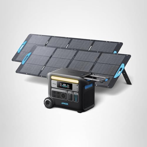 Generador solar Anker SOLIX F2000, central eléctrica portátil de 2048 Wh con baterías LiFePO4 y 2 paneles solares de 200 W, tecnología GaNPrime, 4 salidas de CA de hasta 2400 W para el hogar, cortes de energía, camping y vehículos recreativos