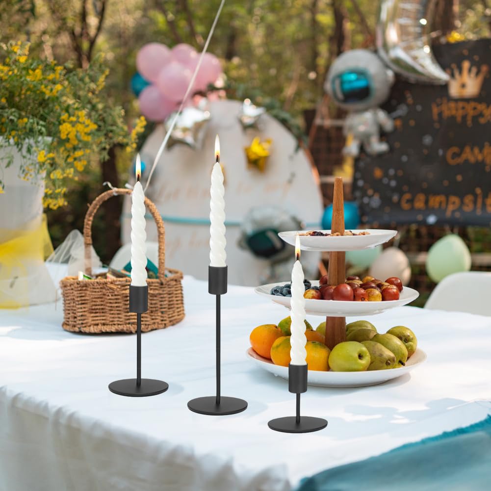 -Black Candle Holders,High quality and pretty black color .Candlestick Holders Candle Holders Taper Candle Holders decor suitable for Home, Table, Wedding, Party, Meeting Room décor and anywhere you want.It is also the perfect gift for your classmates, friends, relatives.