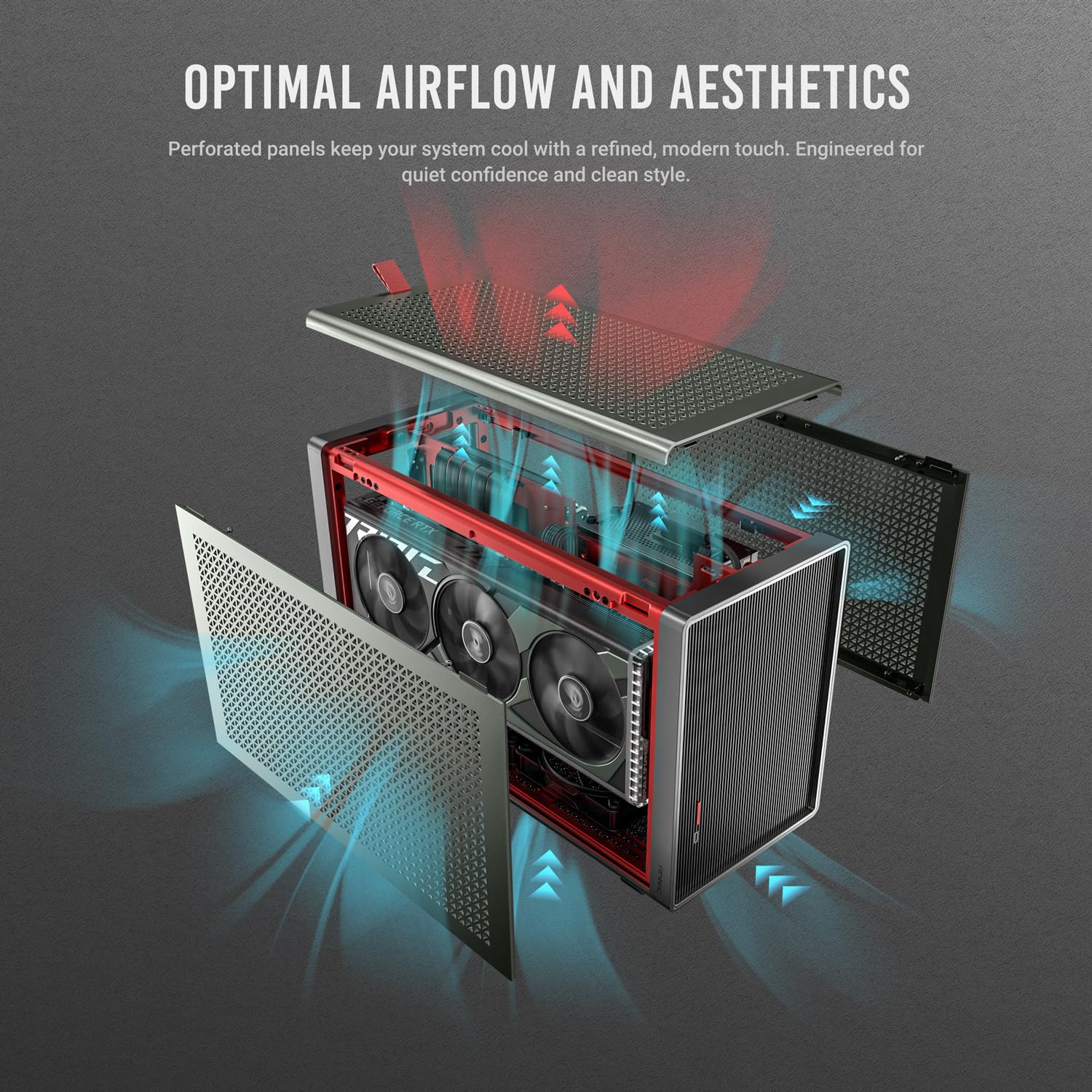 Introducing the Performance 1 M, a sleek and compact Mini ITX case designed for enthusiasts who demand both performance and style. Built from a combination of steel and aluminum, Performance 1 M is not only gorgeous but also durable. The tool-free side panels allow for effortless access to your components, making upgrades and maintenance quick and easy. Performance 1 M also includes a PCIE 4.0 riser cable and can accommodate huge GPUs. With the amazing combination of aesthetics and functionality, this case is perfect for modders and gamers alike, offering the flexibility and durability needed to build a powerful and visually stunning rig.
