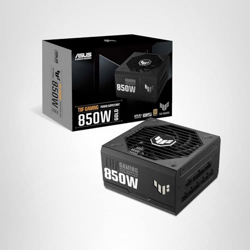 ASUS TUF Gaming 850W Gold (850 Watt, compatible con ATX 3.0, fuente de alimentación totalmente modular, 80+ Gold, componentes de grado militar, rodamiento de bolas doble, ventilador de tecnología axial, revestimiento de PCB, 10 años de garantía)