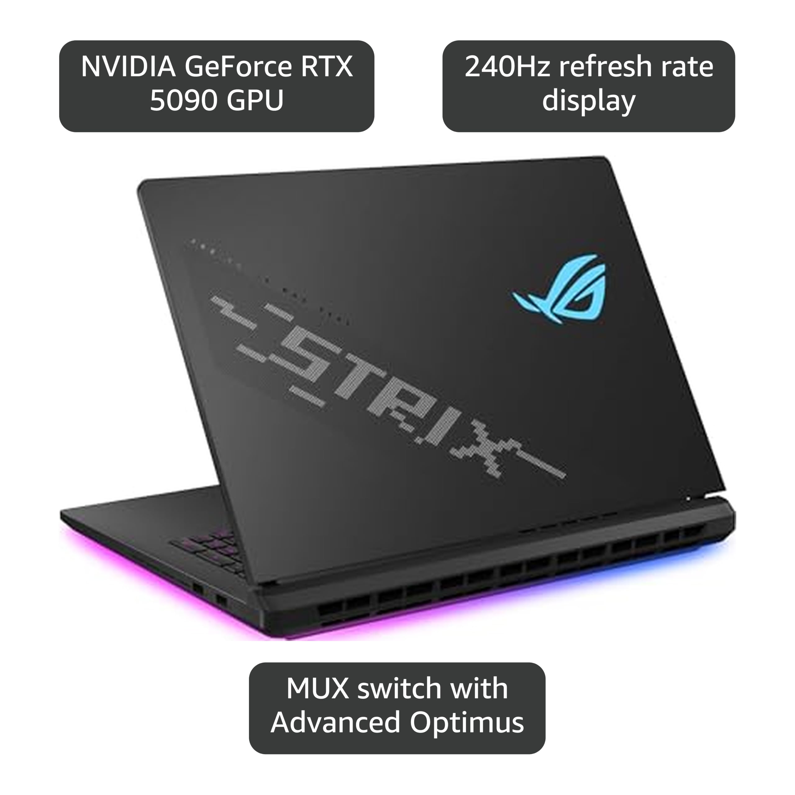 Portátil para juegos ASUS ROG Strix SCAR 18 (2025), 18" ROG Nebula HDR 16:10 2.5K 240Hz/3ms, NVIDIA GeForce RTX 5090, Intel Core Ultra 9 275HX, 32GB DDR5, 2TB PCIe Gen 4 SSD, Wi-Fi 7, Win 11 Pro, G835LX-XS97
