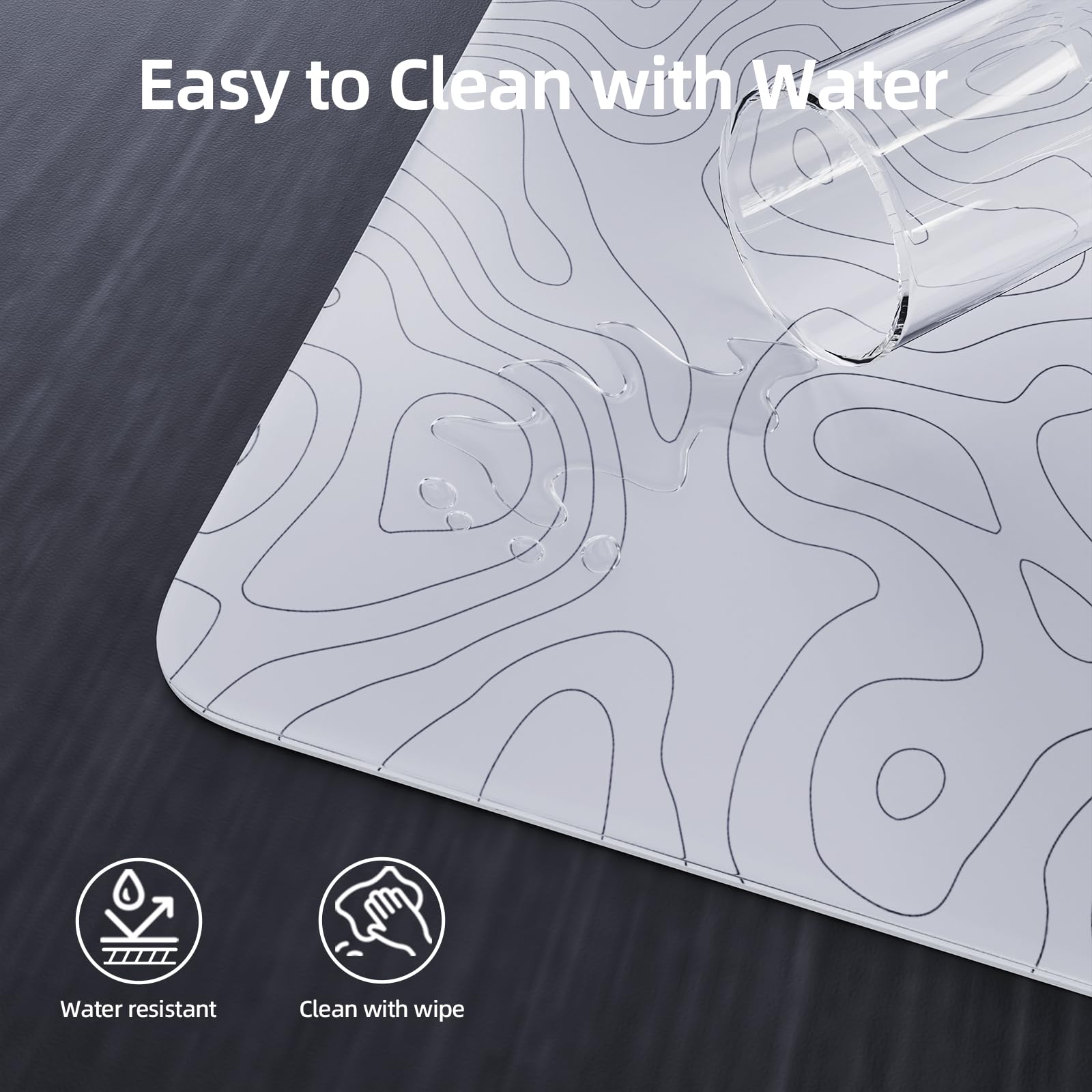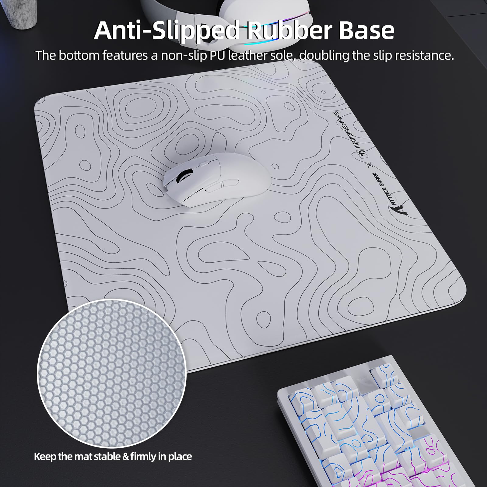 -【 Advanced Non-Slip PU Leather Base for Stability & Noise Reduction】The anti-slip PU leather base with honeycomb engraving technology guarantees exceptional grip, preventing movement even during high-intensity gameplay. Whether executing fast swipes or sudden stops, this tempered glass mouse pad stays firmly in place, ensuring stable, uninterrupted control.