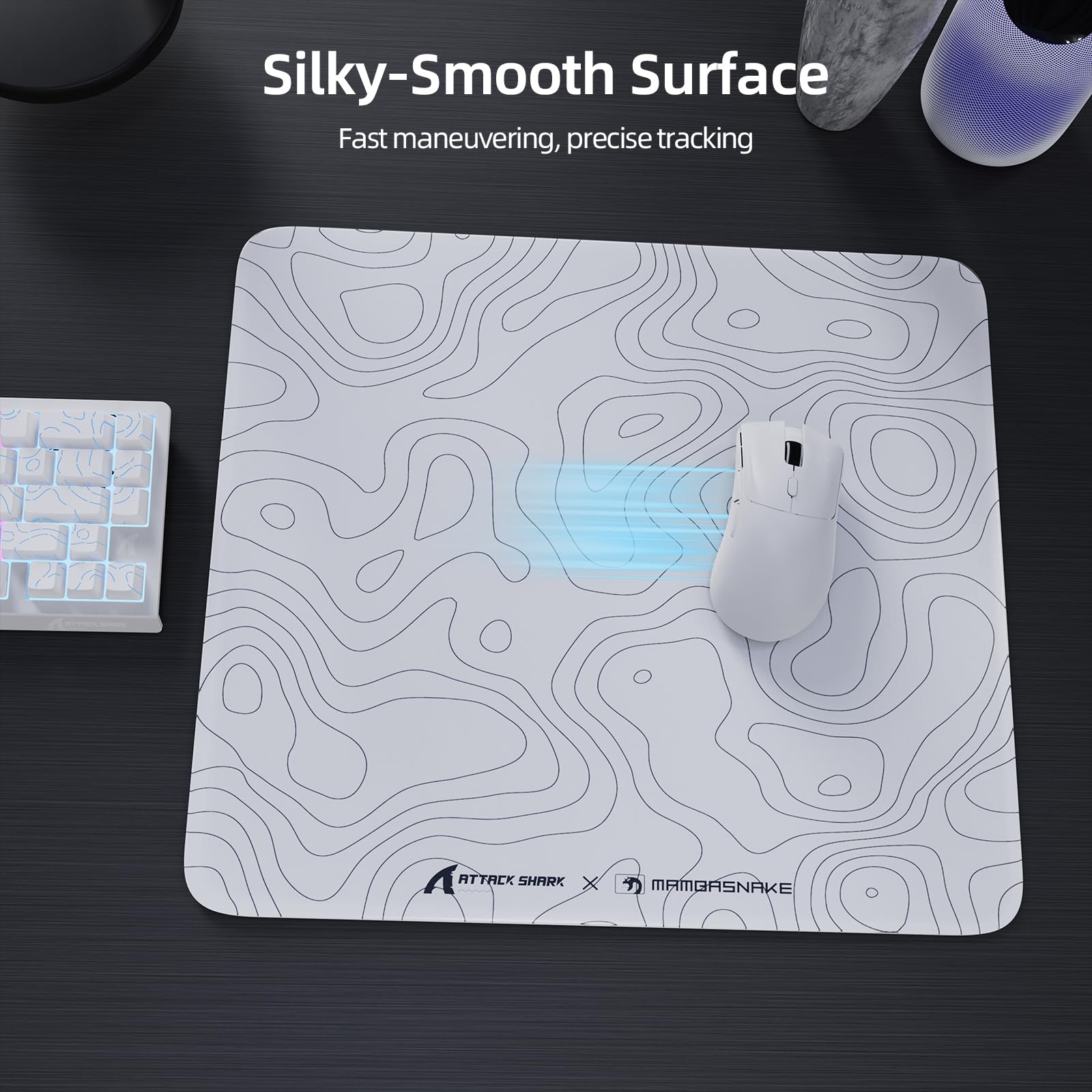 Attack Shark CM05 Alfombrilla de ratón para juegos de cristal contorneado, textura nano-micrograbada, superficie de vidrio lisa, alta precisión, movimiento rápido, antiarañazos, base súper antideslizante de cuero PU, tamaño grande (450 × 400 mm), blanco
