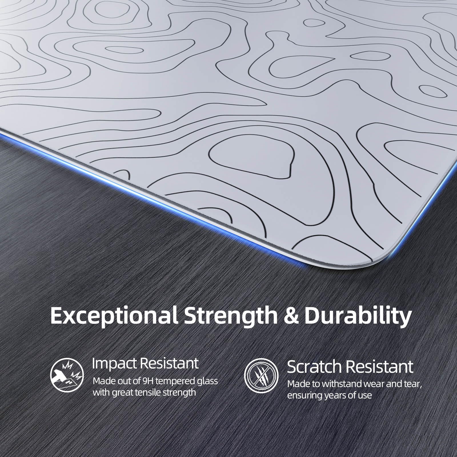 -【Easy to Clean & Long-Lasting Performance】Featuring a special protective coating, the white mouse pad remains smooth and pristine even after extended use. Dust, sweat, and stains can be effortlessly wiped away with a microfiber cloth. This glass pad offers effortless maintenance and long-lasting performance, making it the best choice for professional and casual gamers alike.