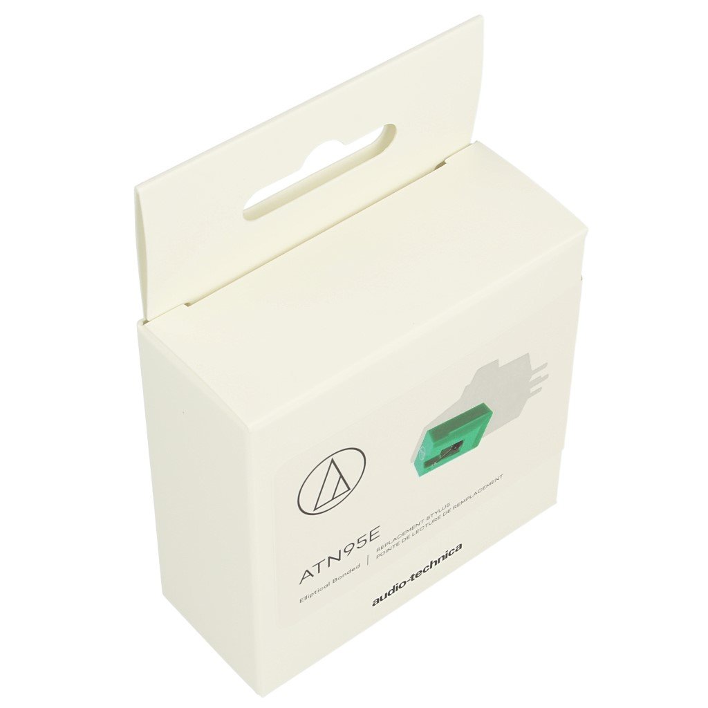The elliptical diamond stylus is designed to track record grooves with high accuracy for outstanding audio reproduction. The ATN95E Elliptical Diamond is a replacement stylus for AT95E cartridge. The ATN95E is also compatible with discontinued models AT93 and AT95.