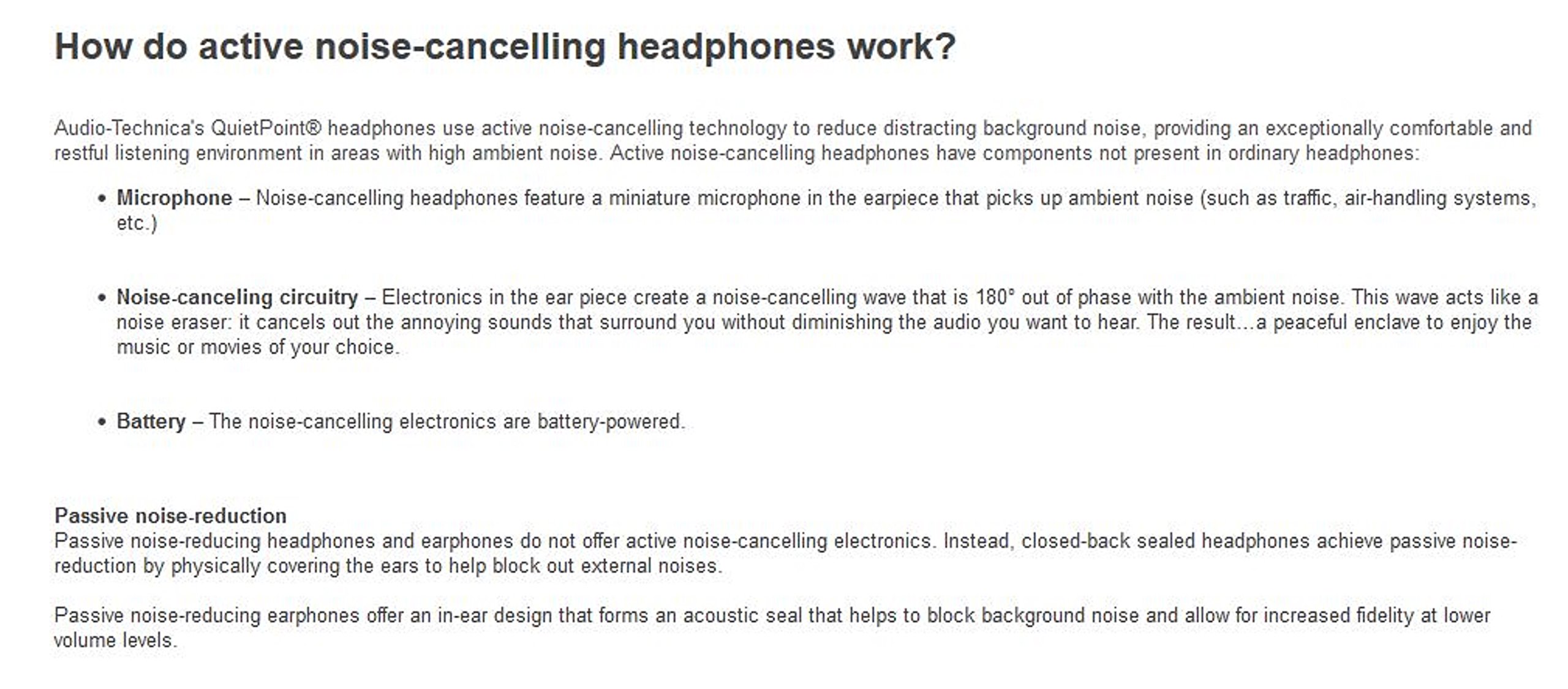 These lightweight, compact headphones boast circuitry that effectively reduces distracting background noise by 90% while offering the superior audio quality that has made Audio-Technica a worldwide leader in electro-acoustic technology. Arrive refreshed after a long flight, avoid distractions in a noisy office, or find peace and quiet in your living room with ATH-ANC7b QuietPoint Active Noise-Cancelling Headphones.