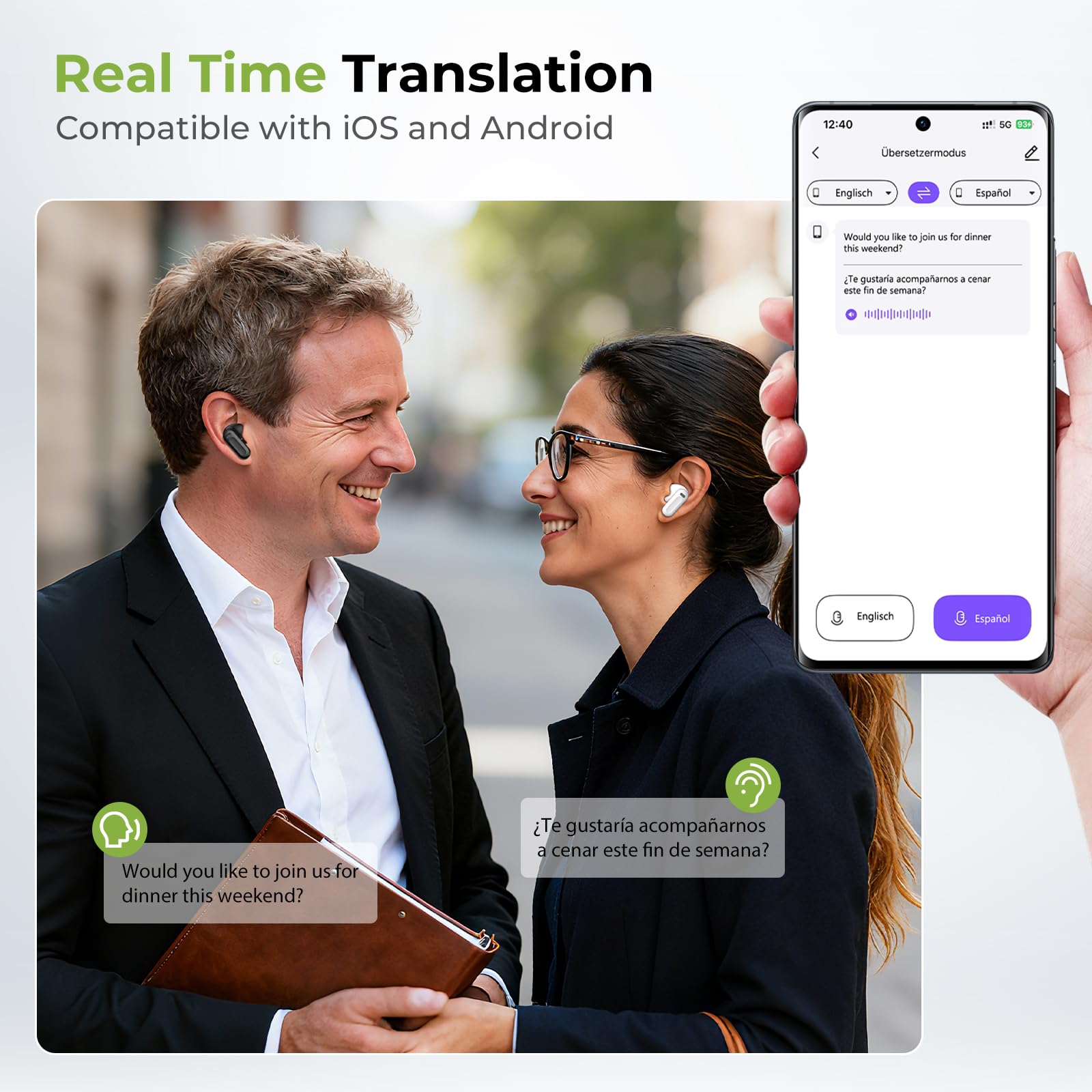 -✔ 3-in-1 Translator Earbuds: NE20 intelligent earbuds combine real-time translation with crystal-clear phone calls and high-fidelity music in a sleek design. Featuring a translation delay of less than 0.5 seconds and an accuracy rate of up to 98%, they are compatible with both iOS and Android.