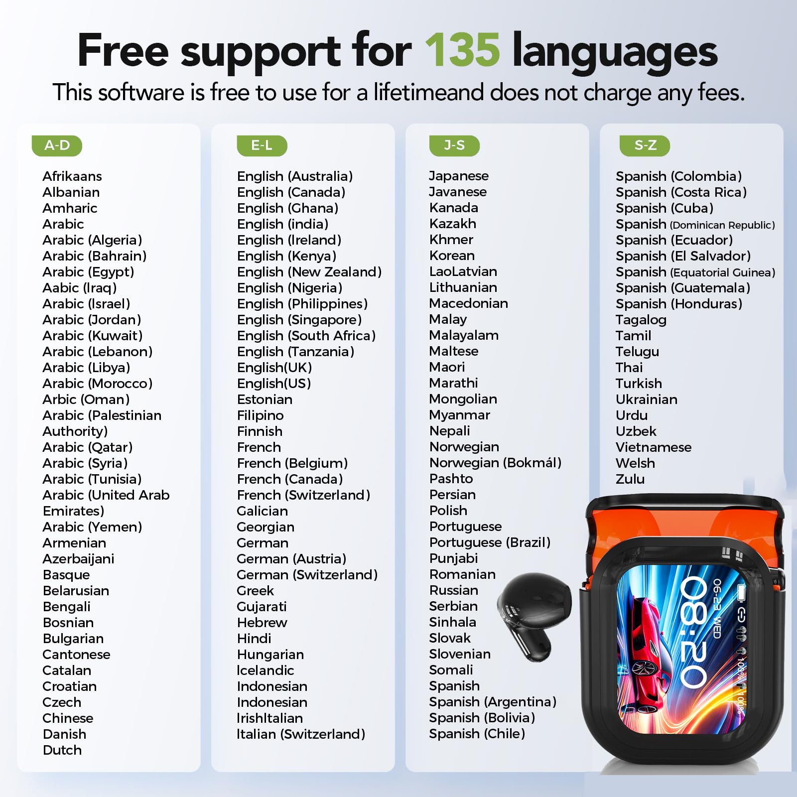 -✔ NE20 AI Translation Earbuds: NE20 Translation Earbuds utilize AI translation earbuds real time technology, Supports 135 languages worldwide, including Spanish, Chinese, English, Japanese, Korean, German, French, and more. Additionally, the integrated AI assistant provides instant answers to your questions anytime you ask.