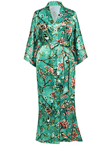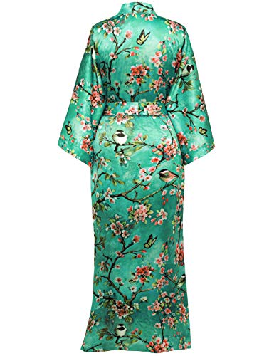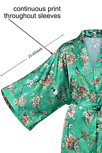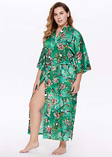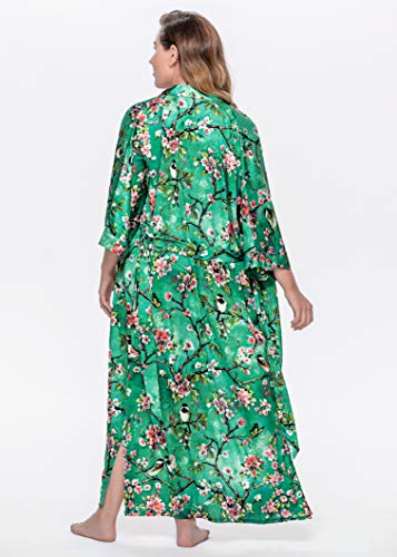 BABEYOND Kimono largo de talla grande con kimono de satén floral y cárdigan suelto para cubrir (Green-Birds)