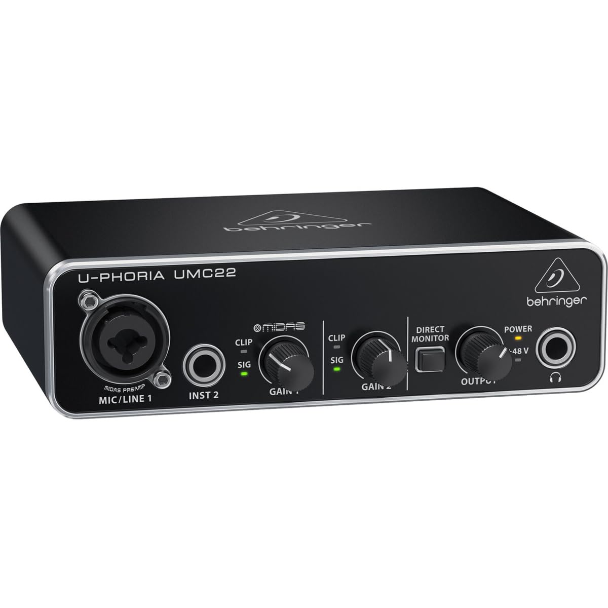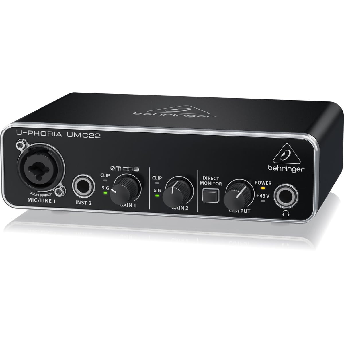 Behringer UMC22 Audiophile 2x2, interfaz de audio USB de 48 kHz con preamplificador de micrófono Midas | Para grabar micrófonos e instrumentos