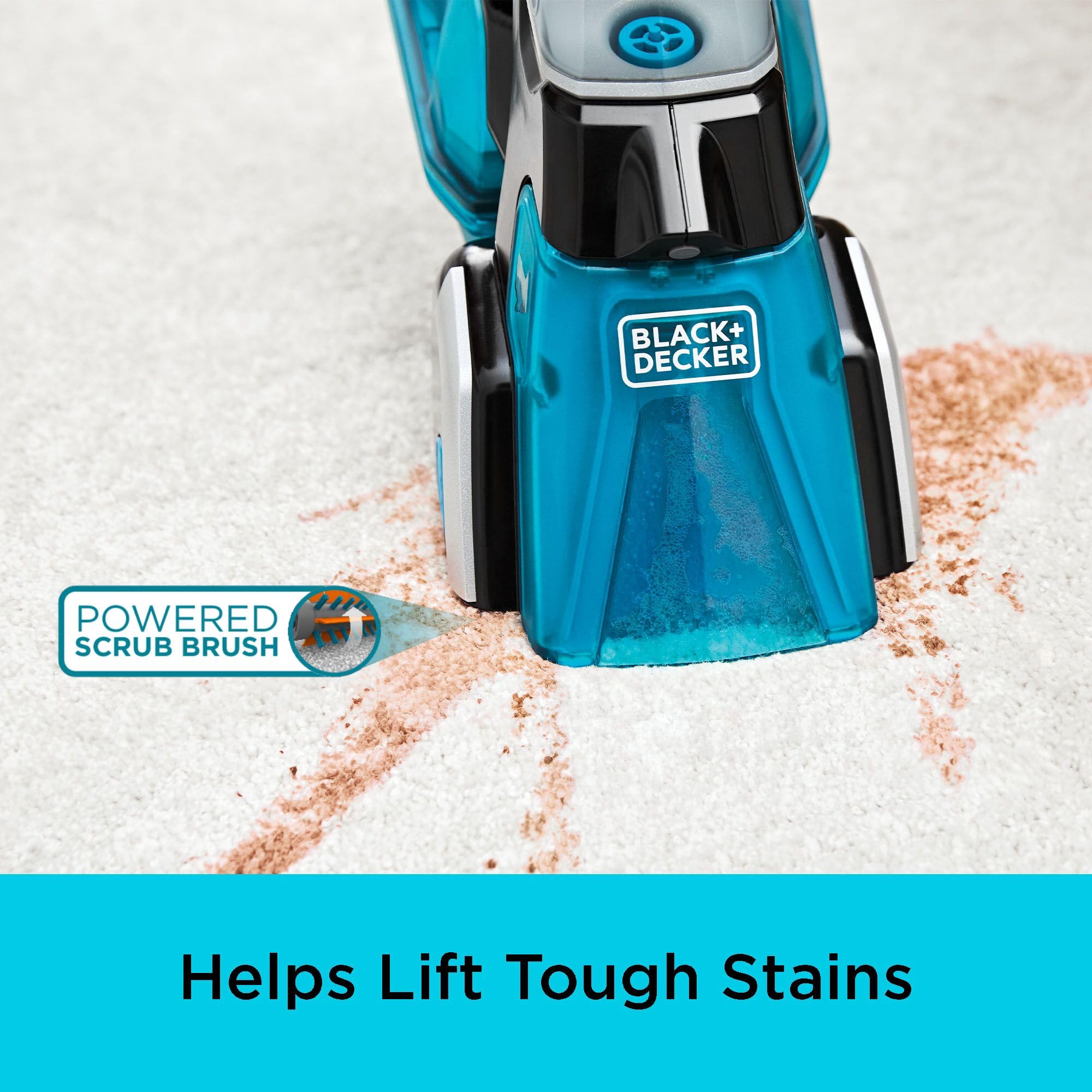-Powered scrub brush – Helps lift set-in stains out of upholstery, carpet, and rugs.