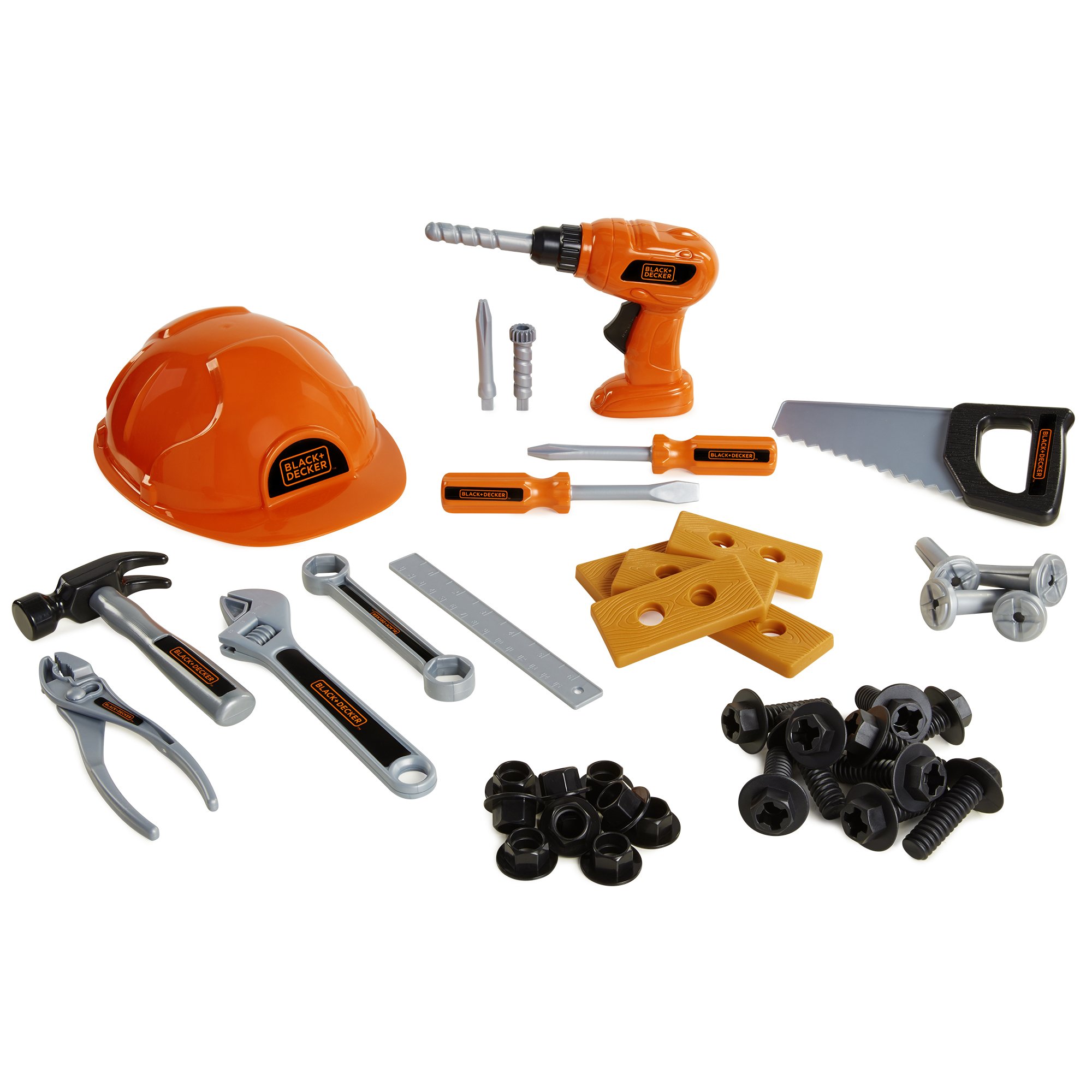 Juego de herramientas para niños Black+Decker Junior: ¡mega juego de herramientas con herramientas y accesorios de 42 piezas! Herramientas de juego de roles para niños pequeños, niños y niñas de 3 años en adelante, ¡incluye casco y taladro!
