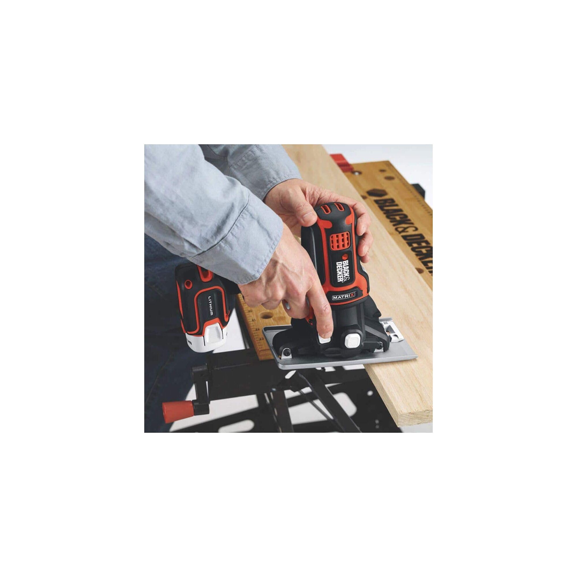The BLACK+DECKER BDCMTTS Matrix Trim Saw Attachment has a lightweight, compact design for comfort and control. Its spindle lock button allows for single-wrench bit changes. This trim saw attachment can be used with any tool in the Black & Decker Matrix line including the BDEDMT and BDCDMT112.