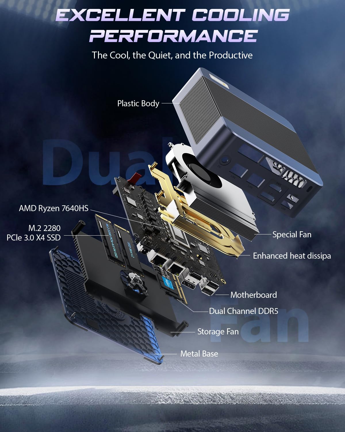 -【Dual 2.5G LAN & WiFi 6E & BT5.2】Built for competitive gamers, this PC feature Dual 2.5G RJ45 LAN ports (5Gbps aggregate), WiFi 6E (9.6Gbps, 6GHz band), and Bluetooth 5.2 (2Mbps speed, 4x range over BT4.2). Enjoy lag-free esports and stable connections to headsets and controllers.