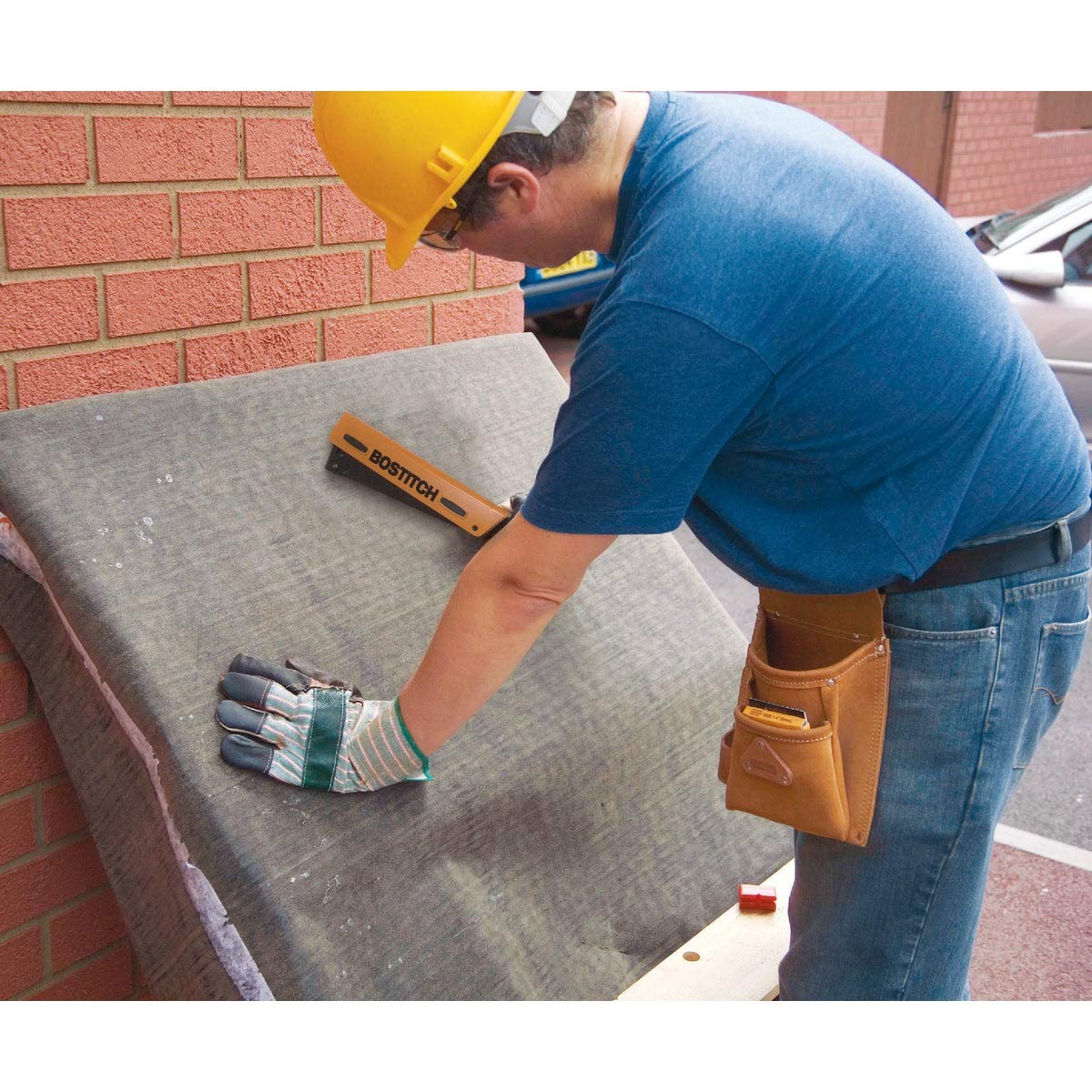 Product Description Die cast frame and through hardened steel components for extreme durability. Quick-load magazine. Tool-free jam clearing. Includes: Quick Draw Holster and 1,000 3/8" staples. Staple Capacity 84 Staples; Fastener Range: 1/4" to 3/8" STCR5019 PowerCrown Staples. Die cast frame and through hardened steel components for extreme durability. Quick-load magazine. From the Manufacturer This Package includes the Slammer, a professional stapling hammer conveniently held in a durable vinyl holster. The Slammer's compact design and one-hand operation make it great for tacking felt and mounting signs. Kit comes with 1000 3/8-Inch Bostitch PowerCrown staples.